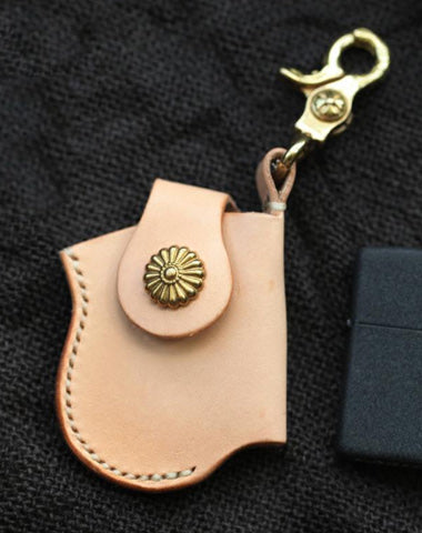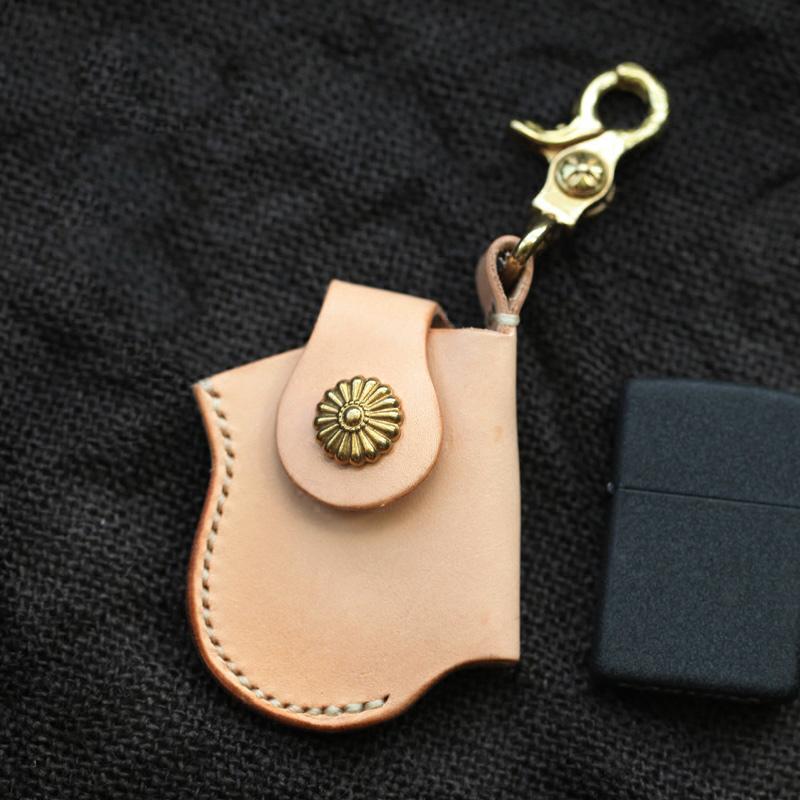 Style: Cool Beige Keychain Leather Mens Zippo Lighter Cases With Belt Loop Lighter Holders For Men