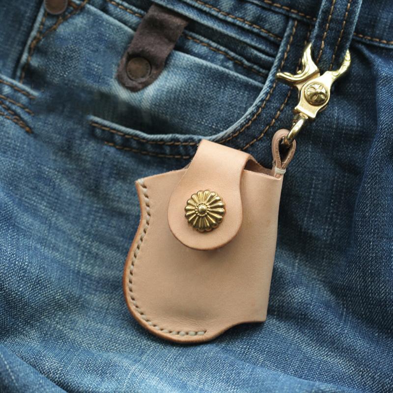 Design: Cool Beige Keychain Leather Mens Zippo Lighter Cases With Belt Loop Lighter Holders For Men