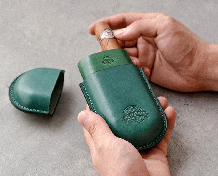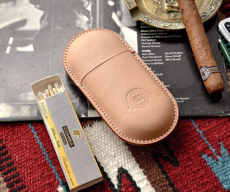 Design: Cool Beige Leather Mens 2pcs Cigar Case Cool Custom Leather Cigar Case for Men