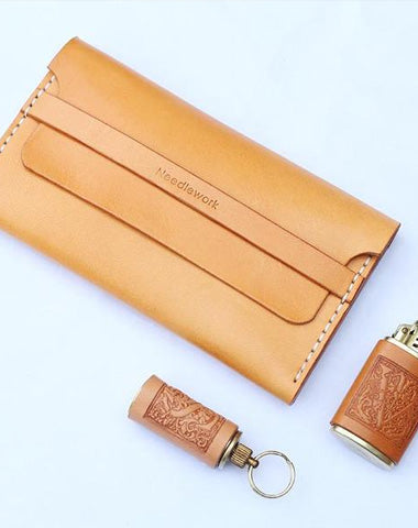 Style: Cool Wooden Slim Leather Mens 20pcs Cigarette Case Custom Beige Cigarette Holder for Men