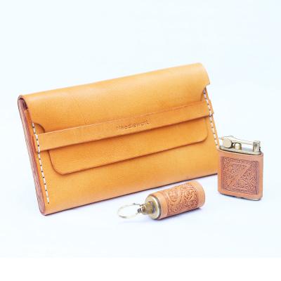 Design: Cool Wooden Slim Leather Mens 20pcs Cigarette Case Custom Beige Cigarette Holder for Men