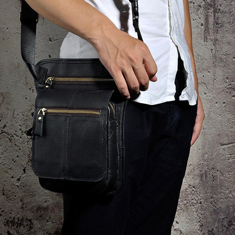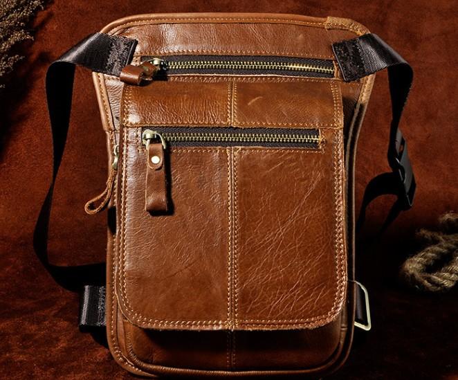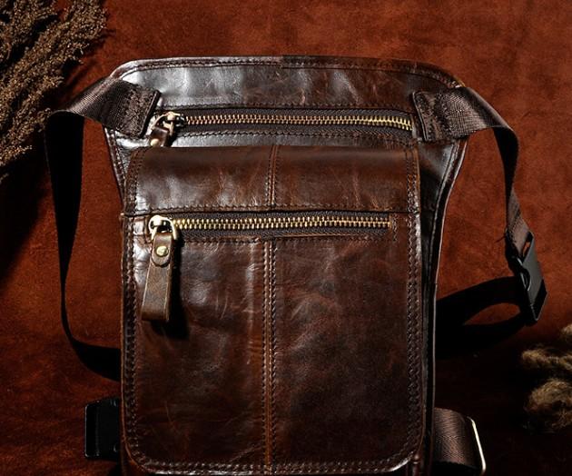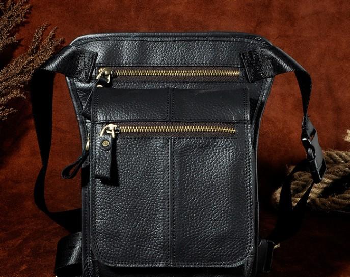 Design: Cool Biker Mens Leather Drop Leg Bag Waist Bag Side Bag Shoulder Bag for Men
