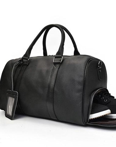 Design: Black Leather Men Large Overnight Bag Travel Bags Weekender Bags For MenOverview: