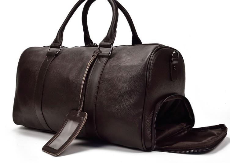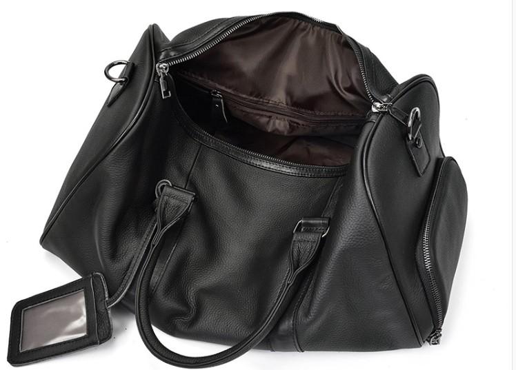 Design: Black Leather Men Large Overnight Bag Travel Bags Weekender Bags For Men