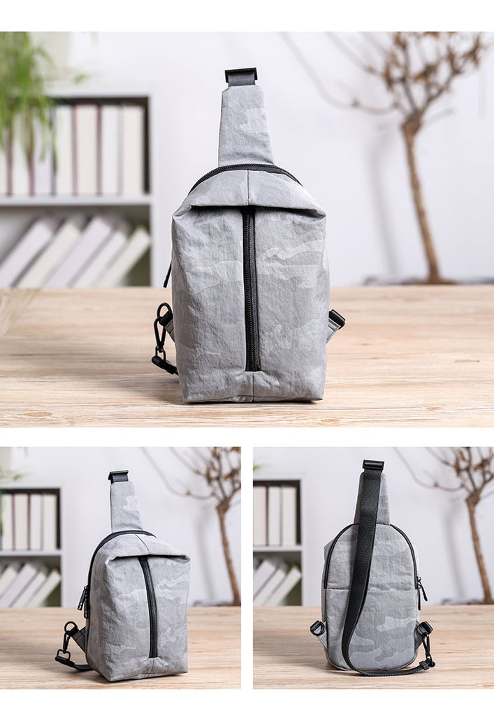Design: Cool Black Canvas Backpack Camouflage Men's Sling Bag Chest Bag One shoulder Backpack Sports Bag For Men