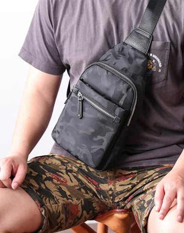 Style: Cool Nylon Men's Sling Bag Camouflage Chest Bag Nylon One shoulder Backpack Sling Pack For Men