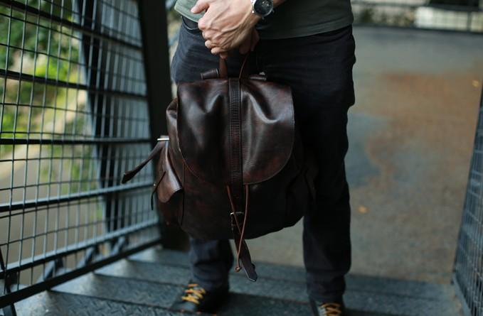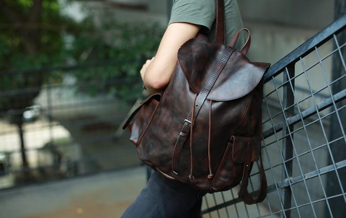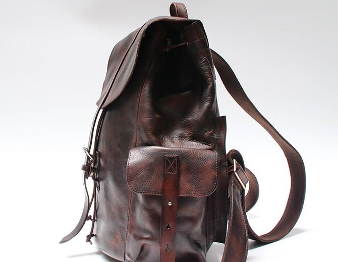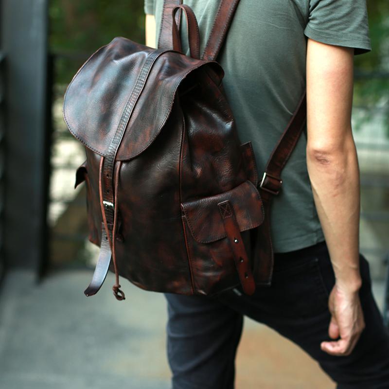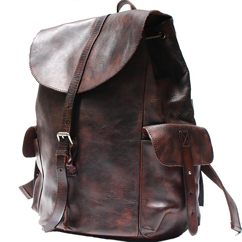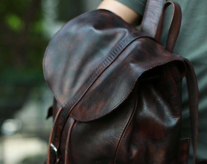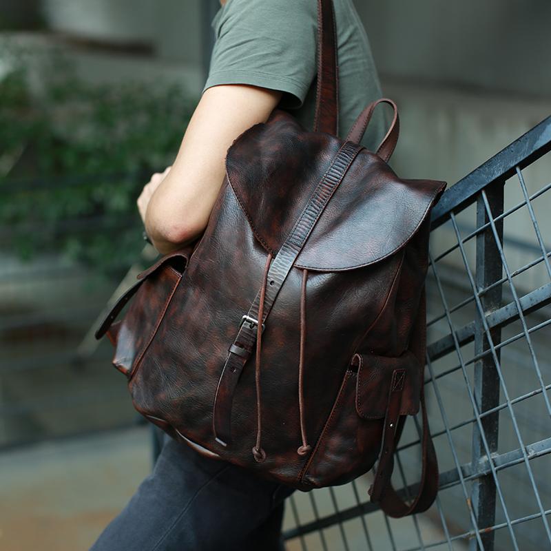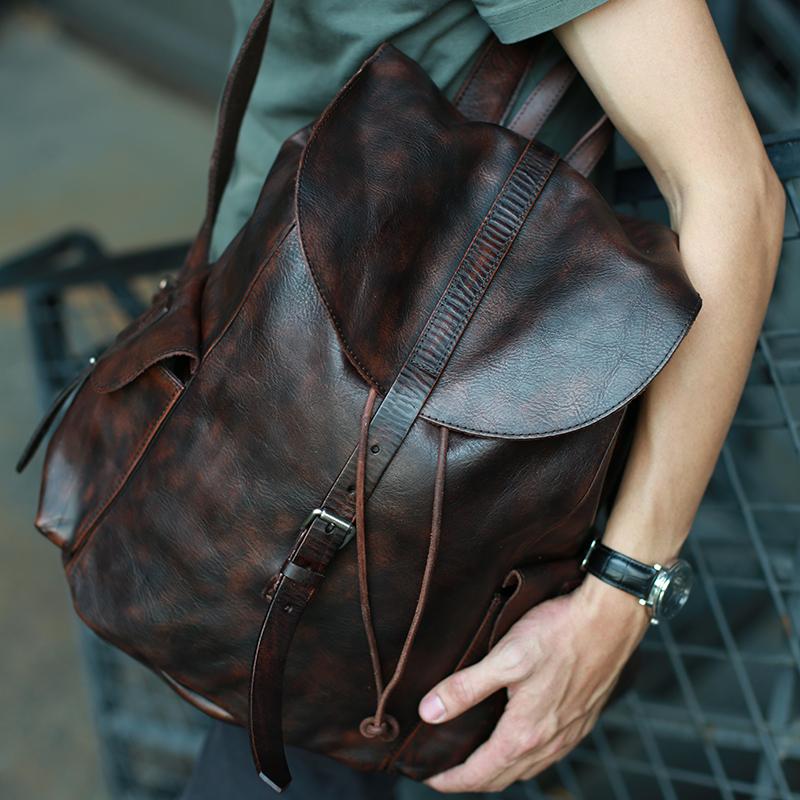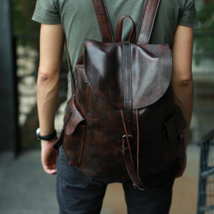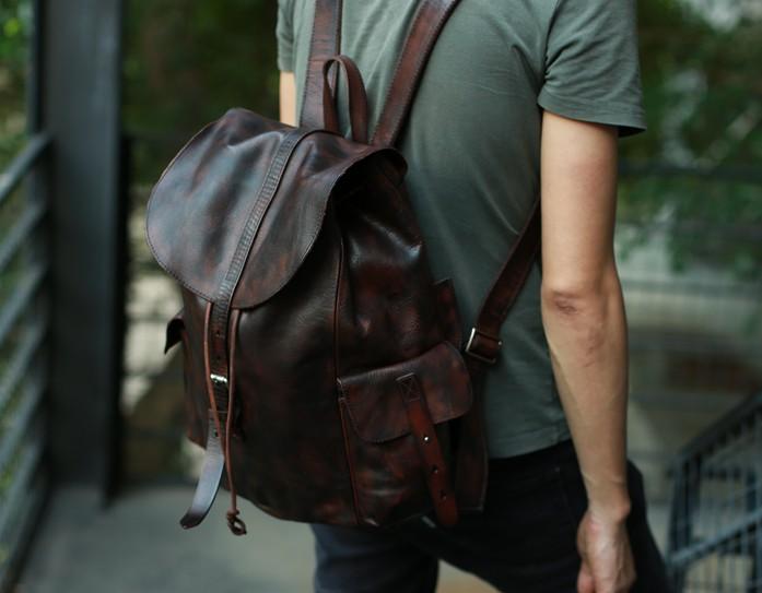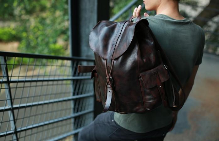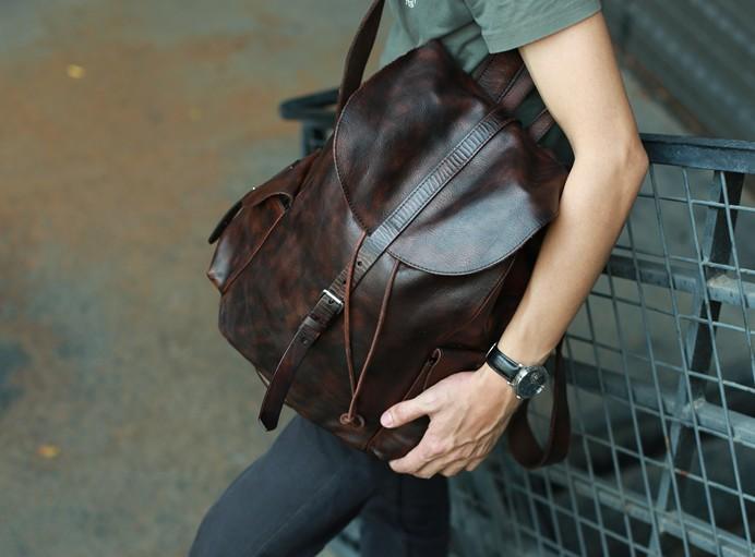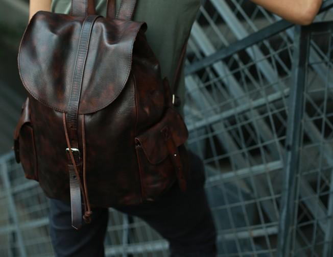 Style: Cool Black Coffee Mens Leather Backpack Travel Backpack School Backpacks for men