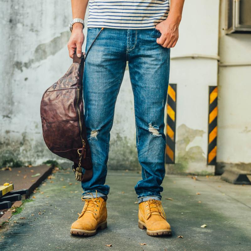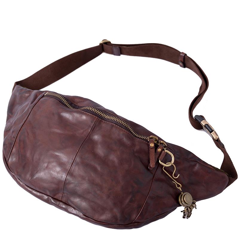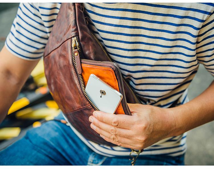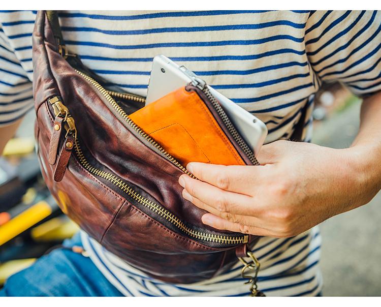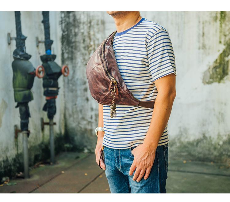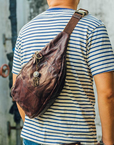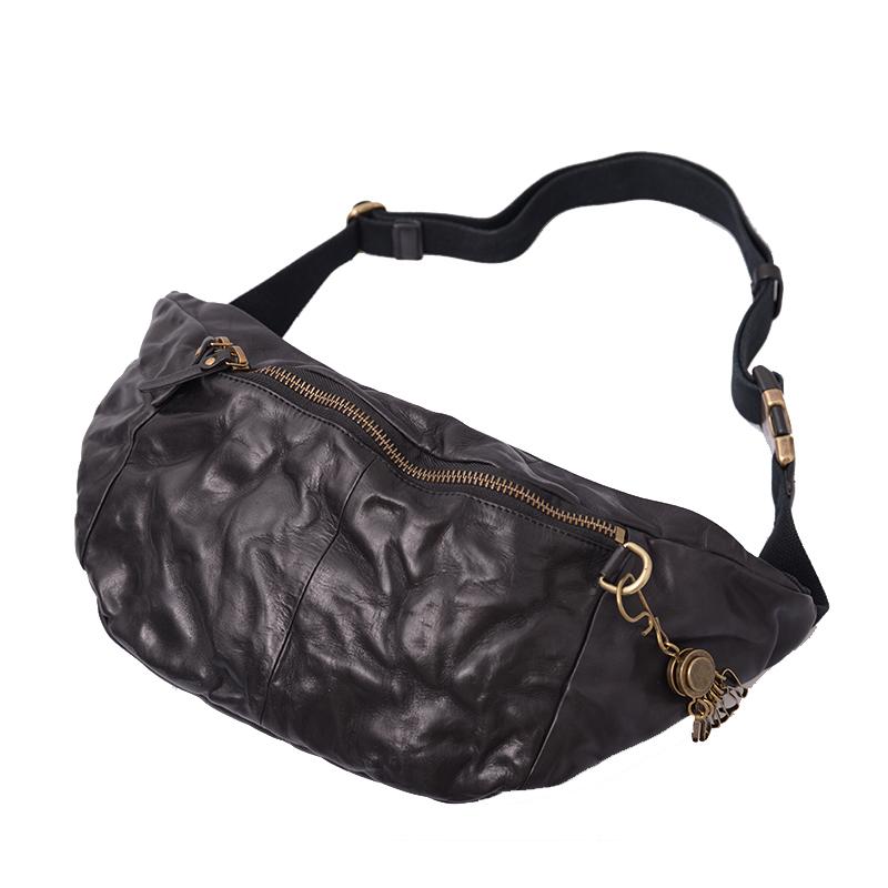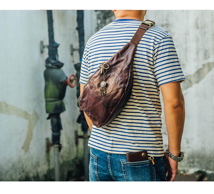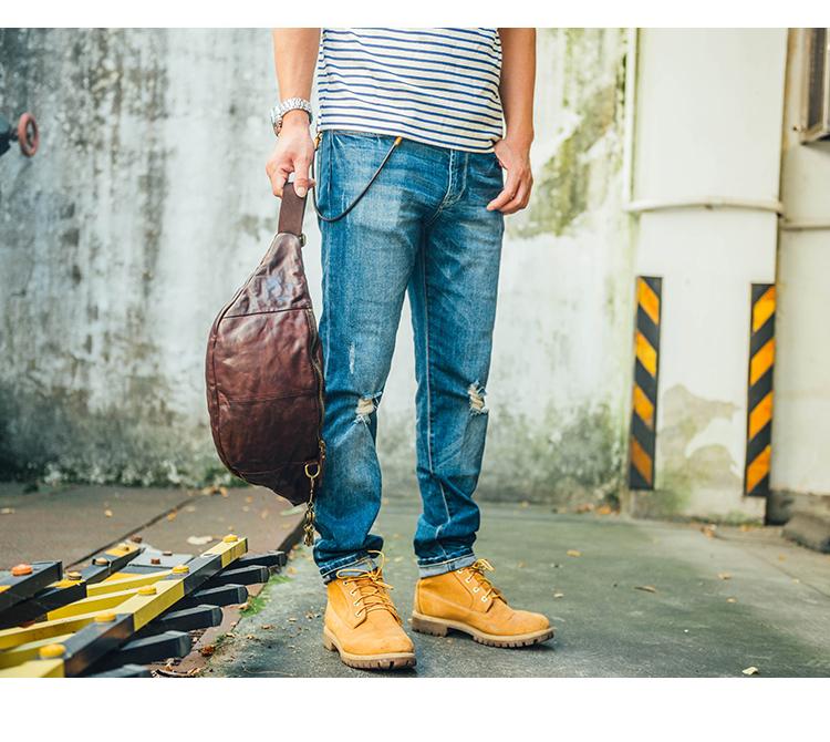 Style: Cool Black Handmade Leather Men Chest Bag Messenger Bag Courier Bags Postman Bag For Men