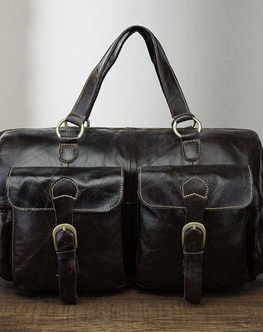 Design: Black Leather Men Large Overnight Bag Travel Bags Weekender Bags For MenOverview: