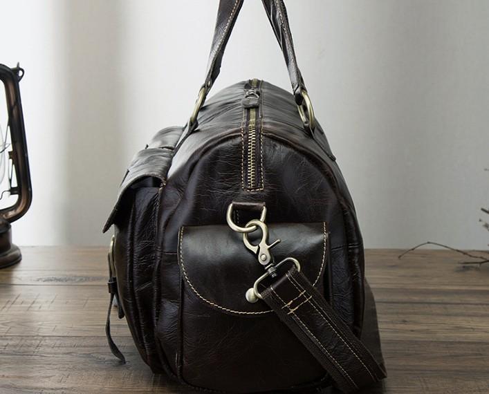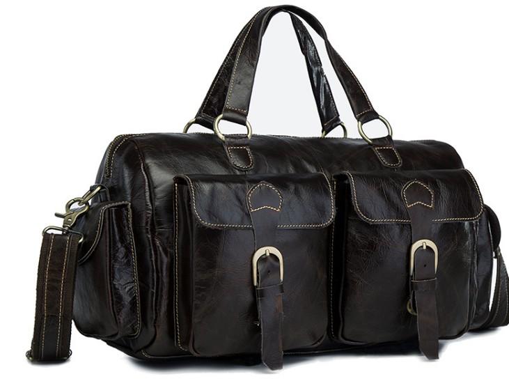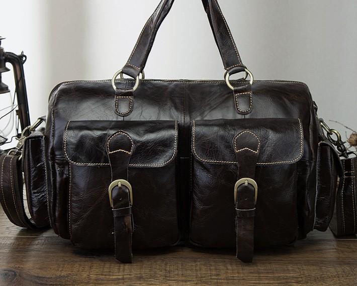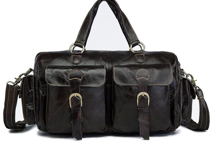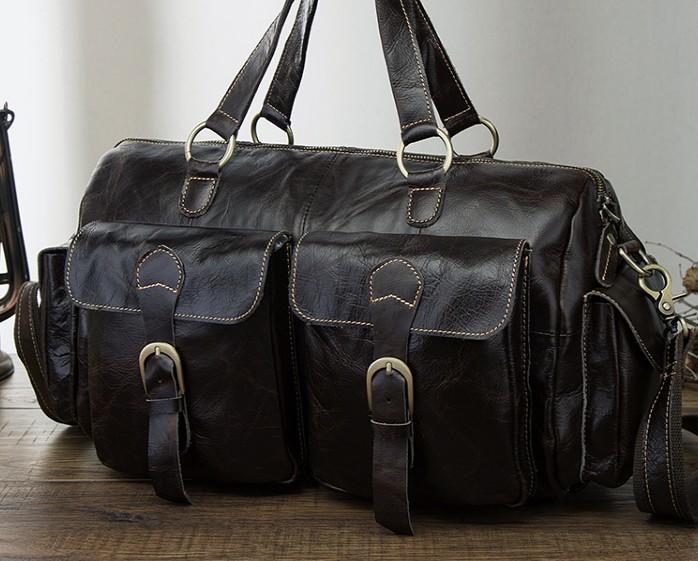 Design: Black Leather Men Large Overnight Bag Travel Bags Weekender Bags For Men