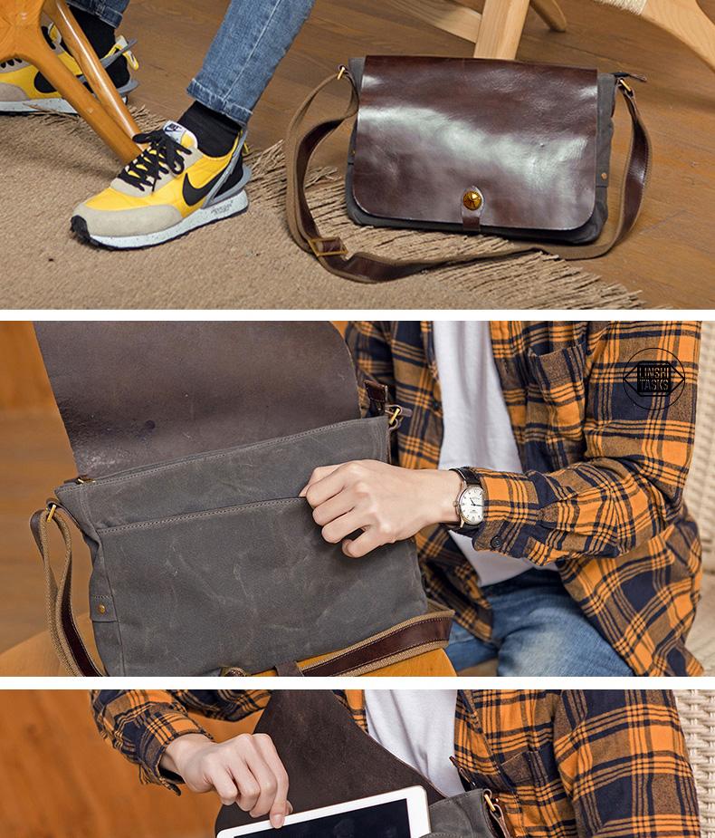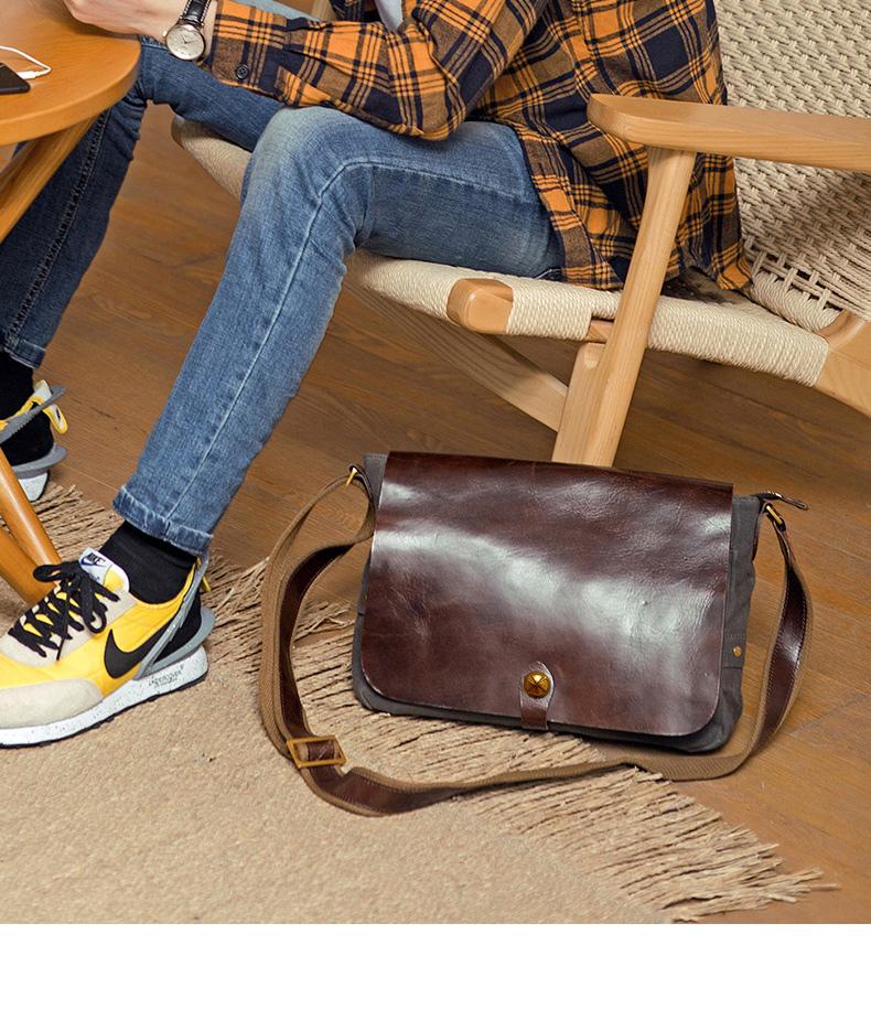 Design: Cool Black Leather Mens Brown Briefcase Bag Messenger Bags Casual School Bags for Men