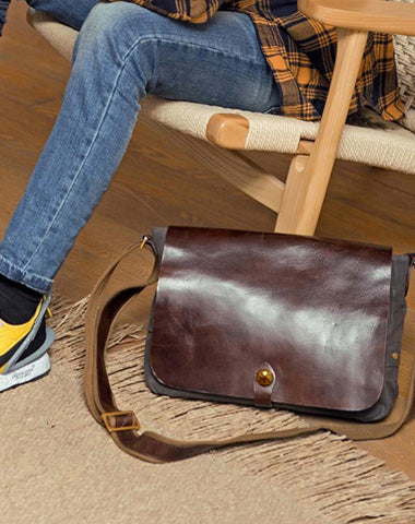 Style: Cool Black Leather Mens Brown Briefcase Bag Messenger Bags Casual School Bags for Men
