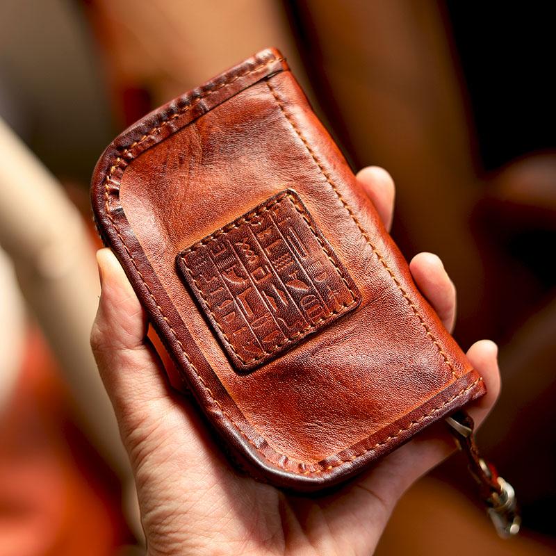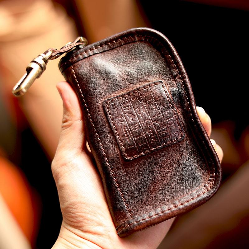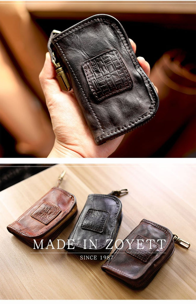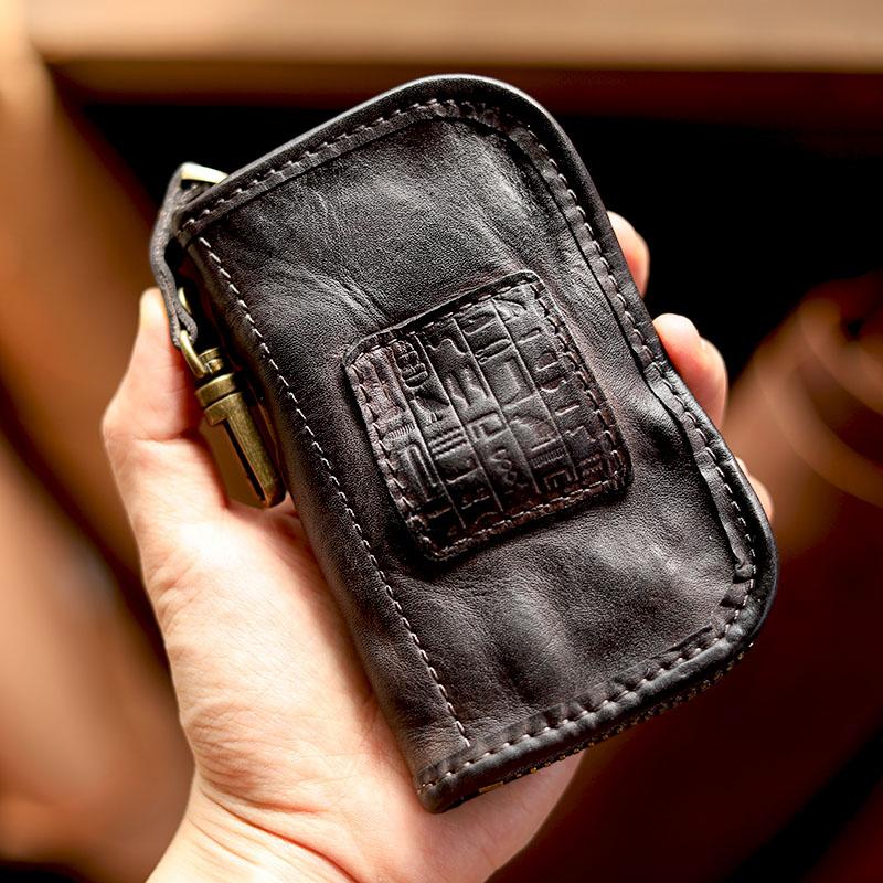 Design: Cool Black Leather Mens Charcoal Key Wallet Coin Purse Front Pocket Wallet For Men