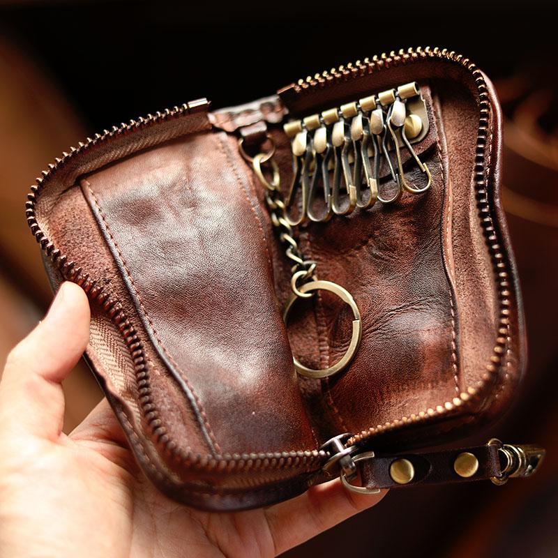 Style: Cool Black Leather Mens Charcoal Key Wallet Coin Purse Front Pocket Wallet For Men