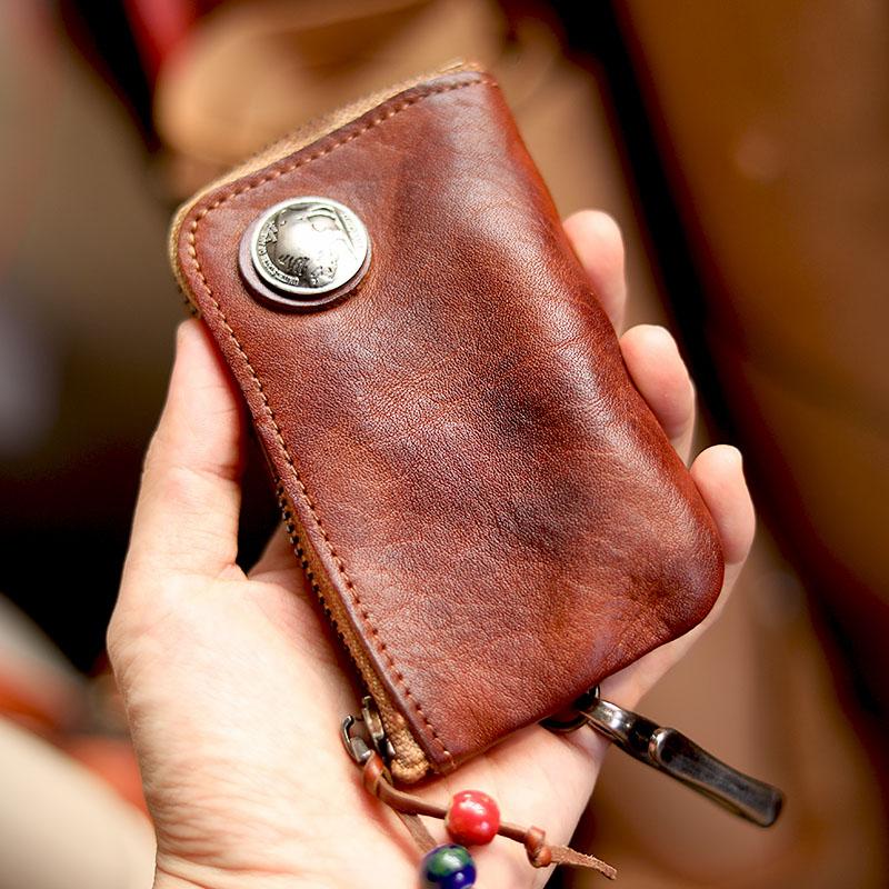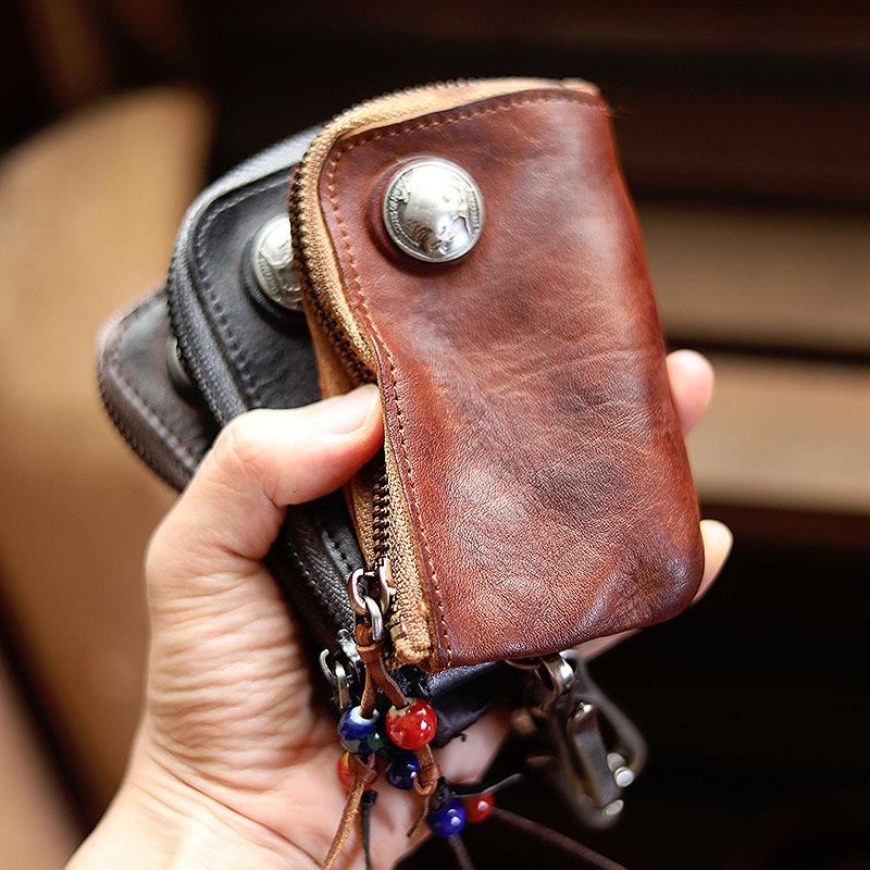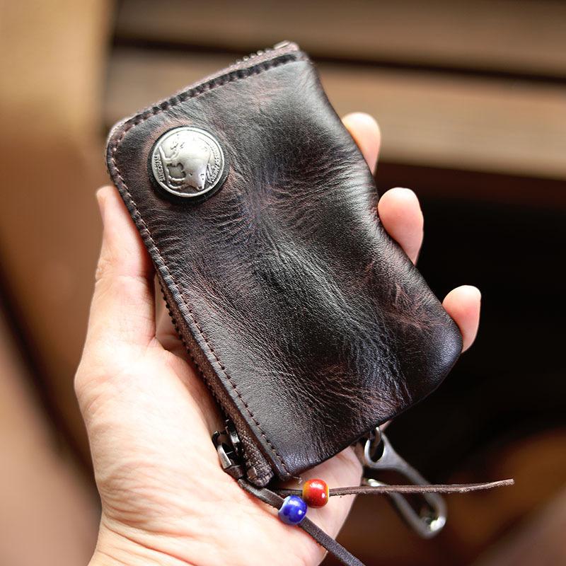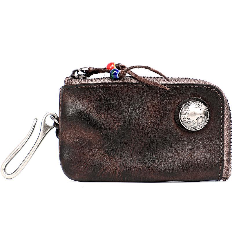 Style: Cool Black Leather Mens Charcoal Key Wallet Coin Purse Front Pocket Wallets For Men
