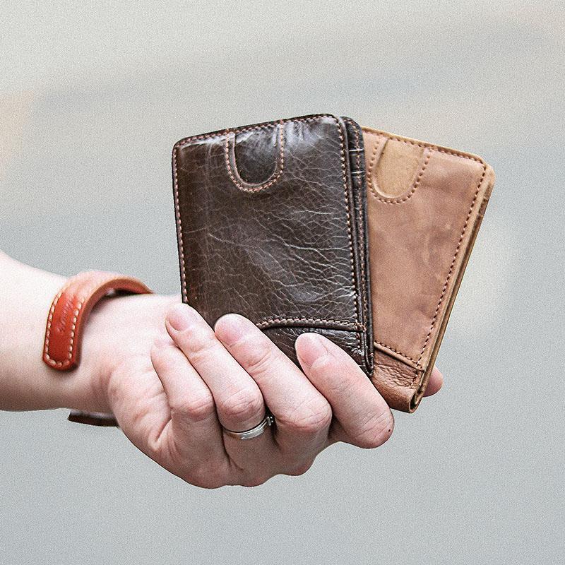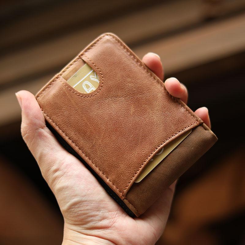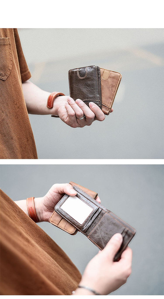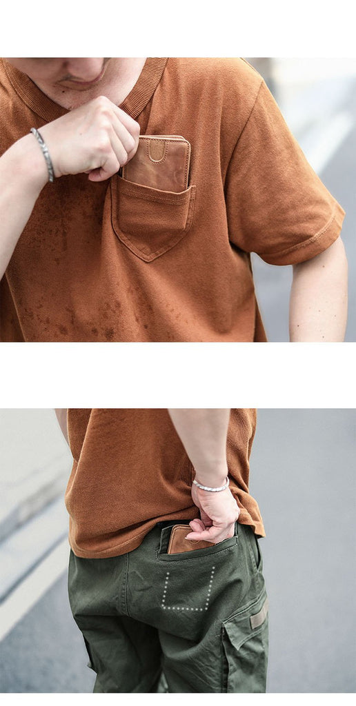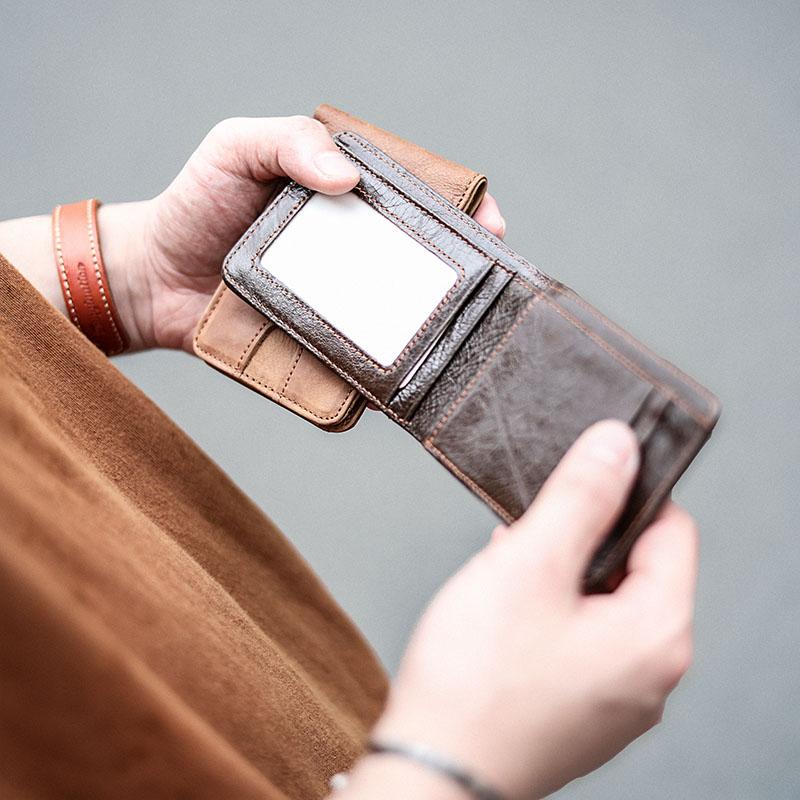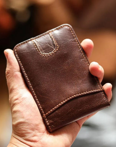 Style: Cool Black Leather Mens billfold Wallet Bifold SMall Wallet Brown Front Pocket Wallet For Men