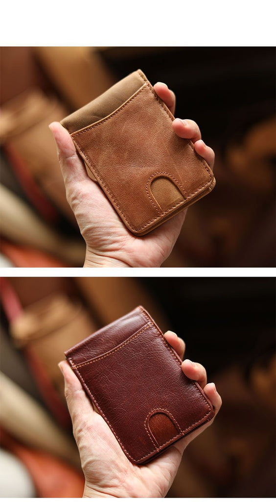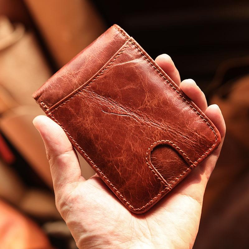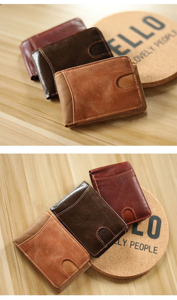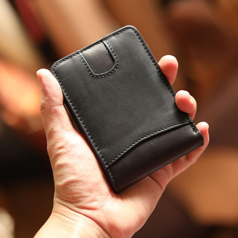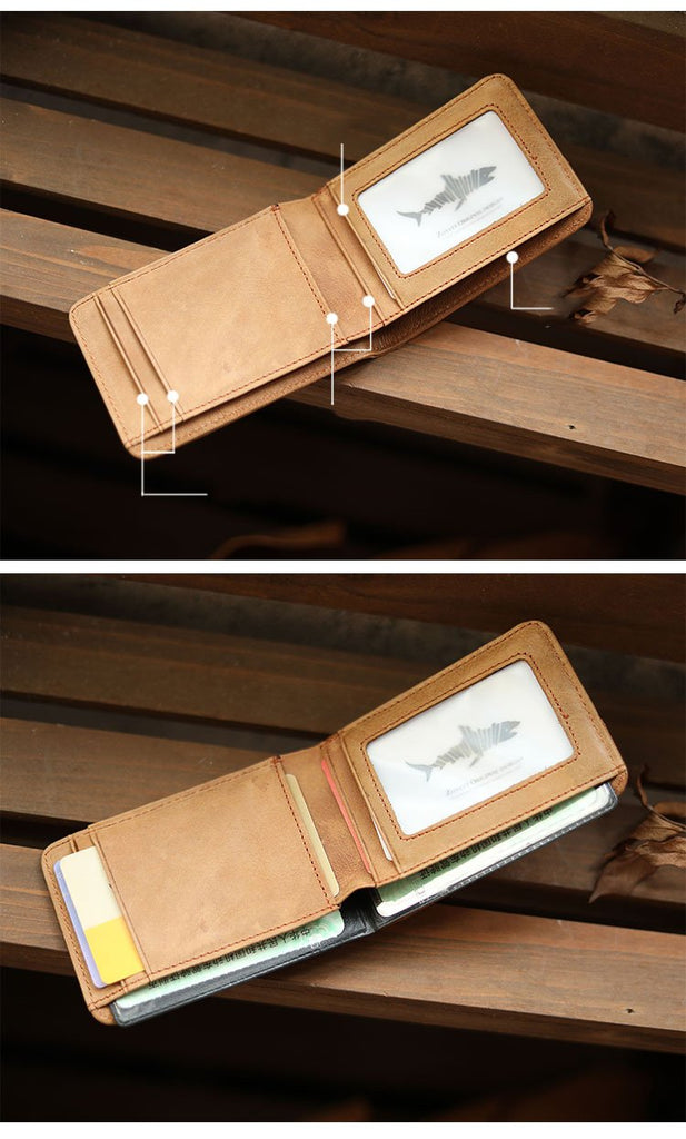 Design: Cool Black Leather Mens billfold Wallet Bifold SMall Wallet Brown Front Pocket Wallet For Men