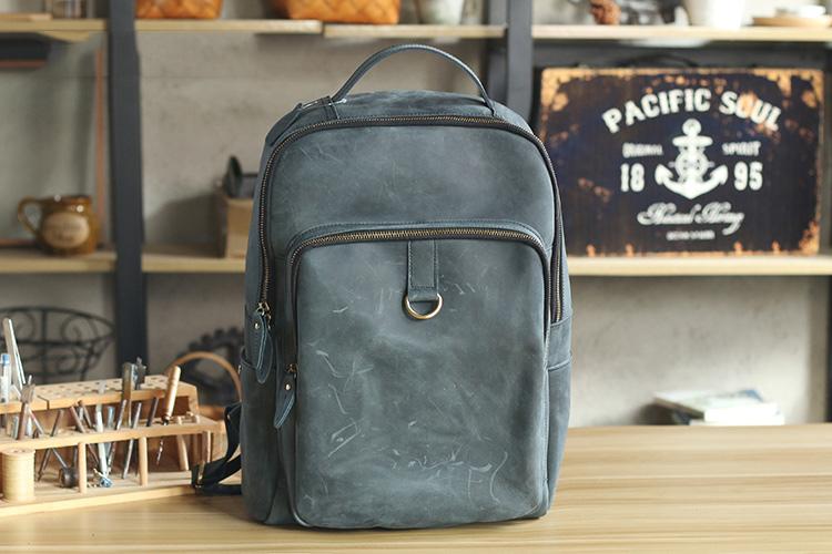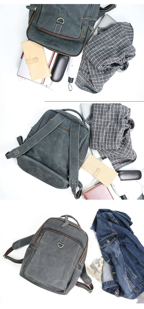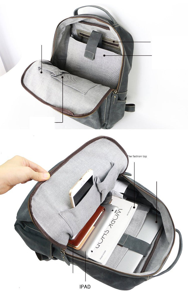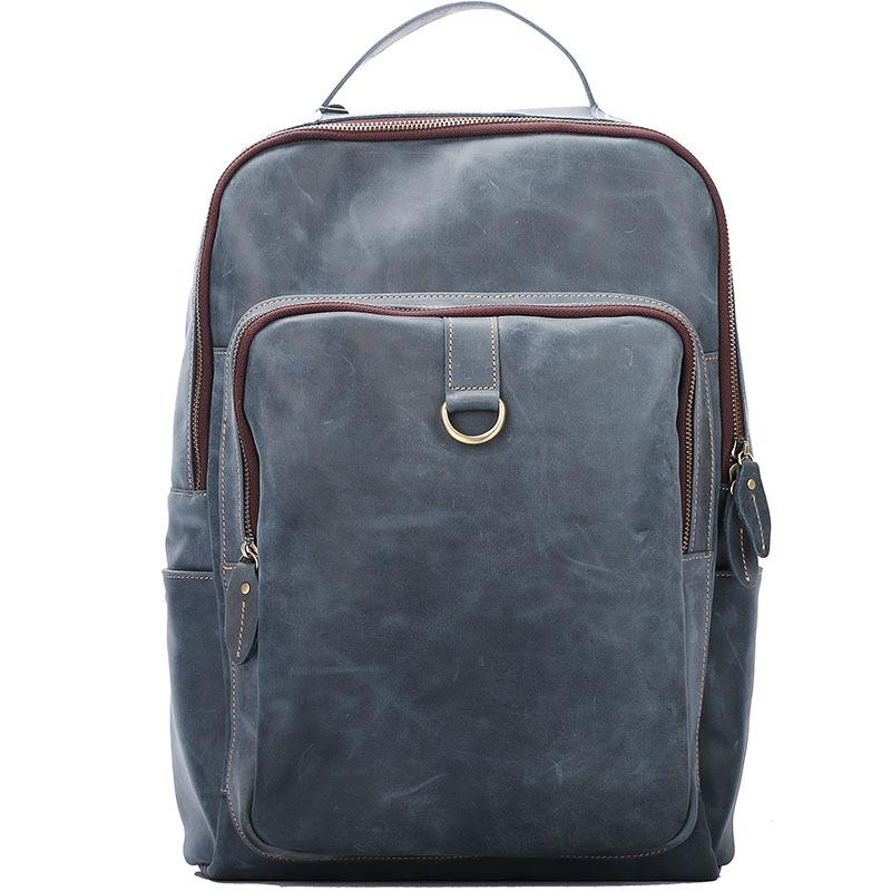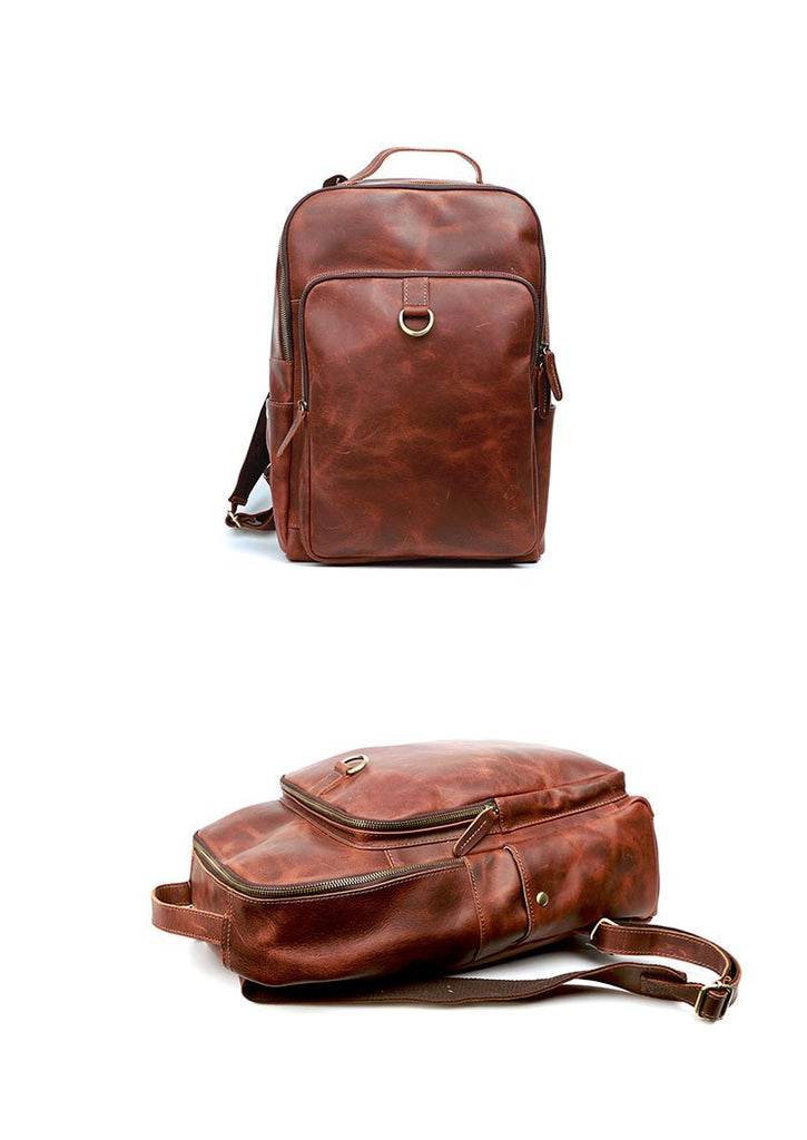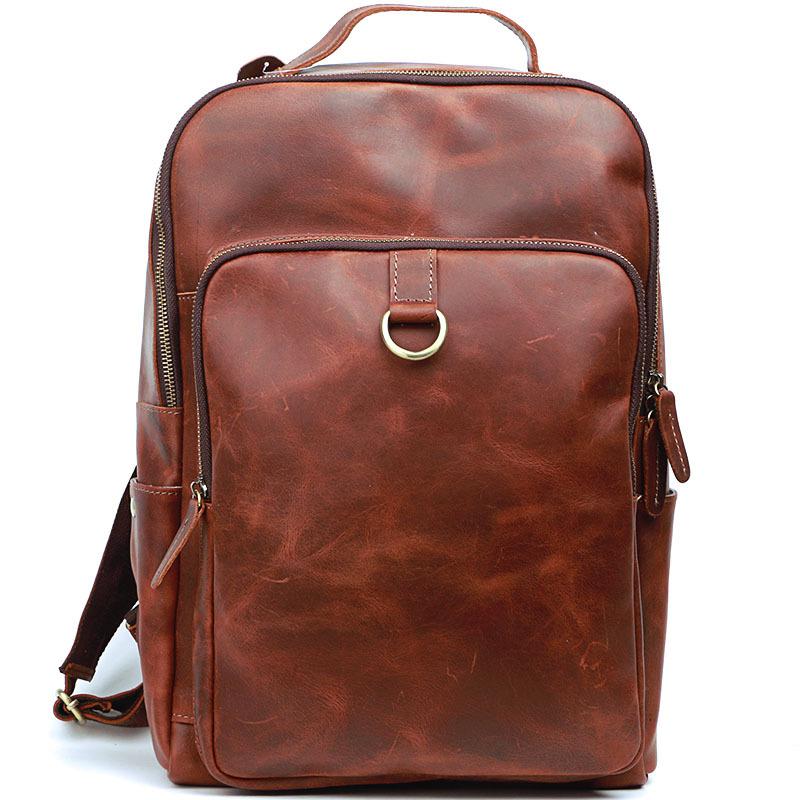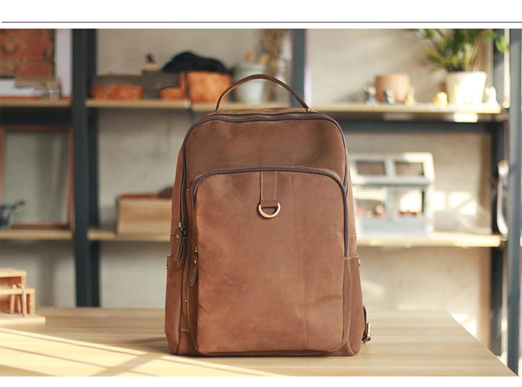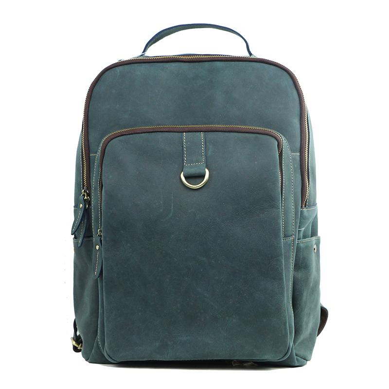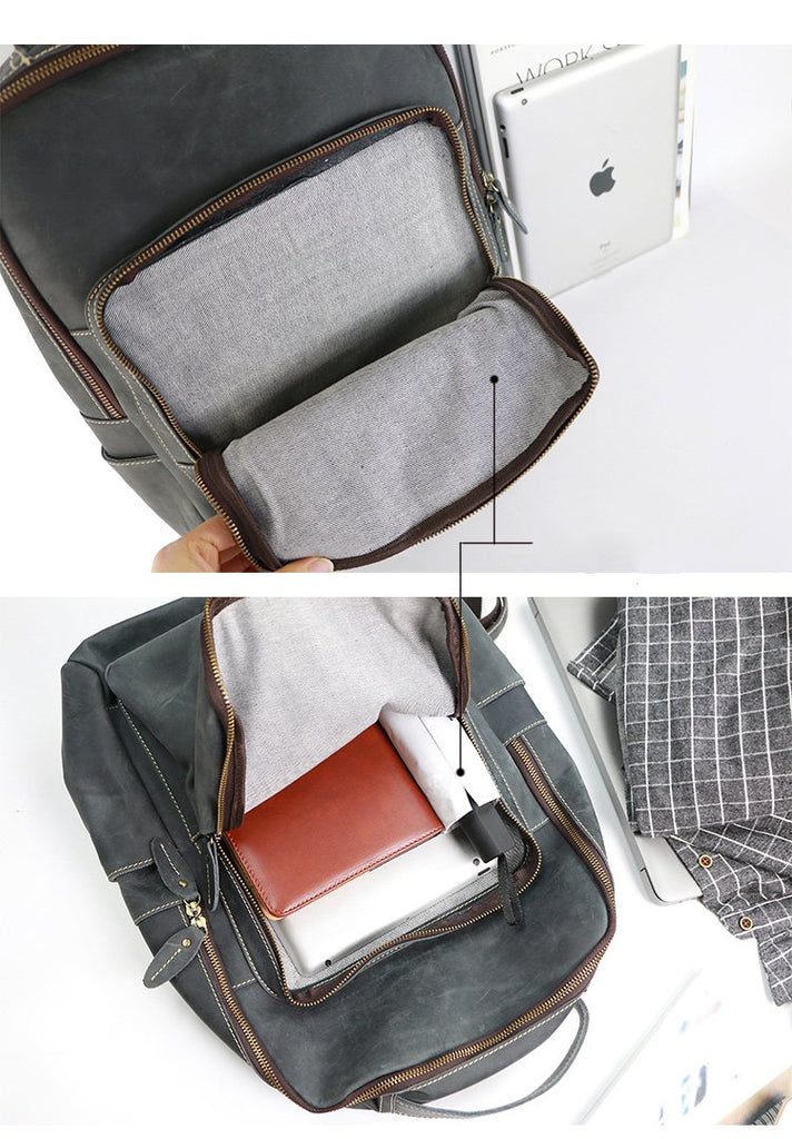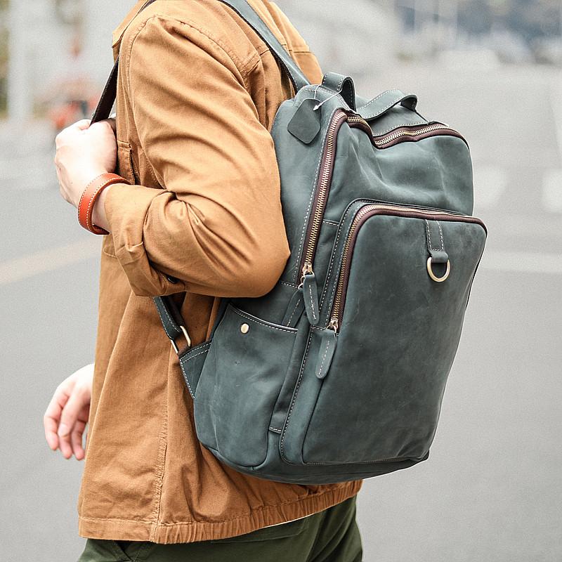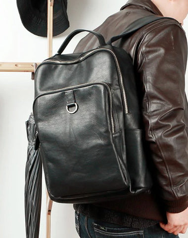 Style: Cool Black Leather Mens Travel Backpack Work Handbags 14 inches Work Backpack For Men
