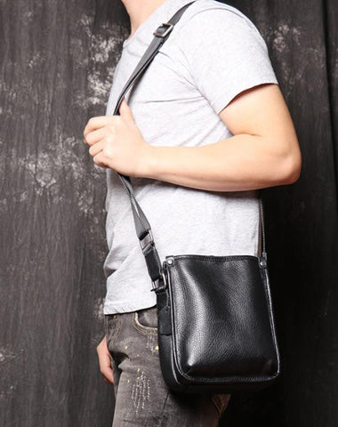 Style: Casual Black LEATHER MENS Ipad Vertical SIDE BAGS COURIER BAG 10 inches MESSENGER BAG FOR MEN