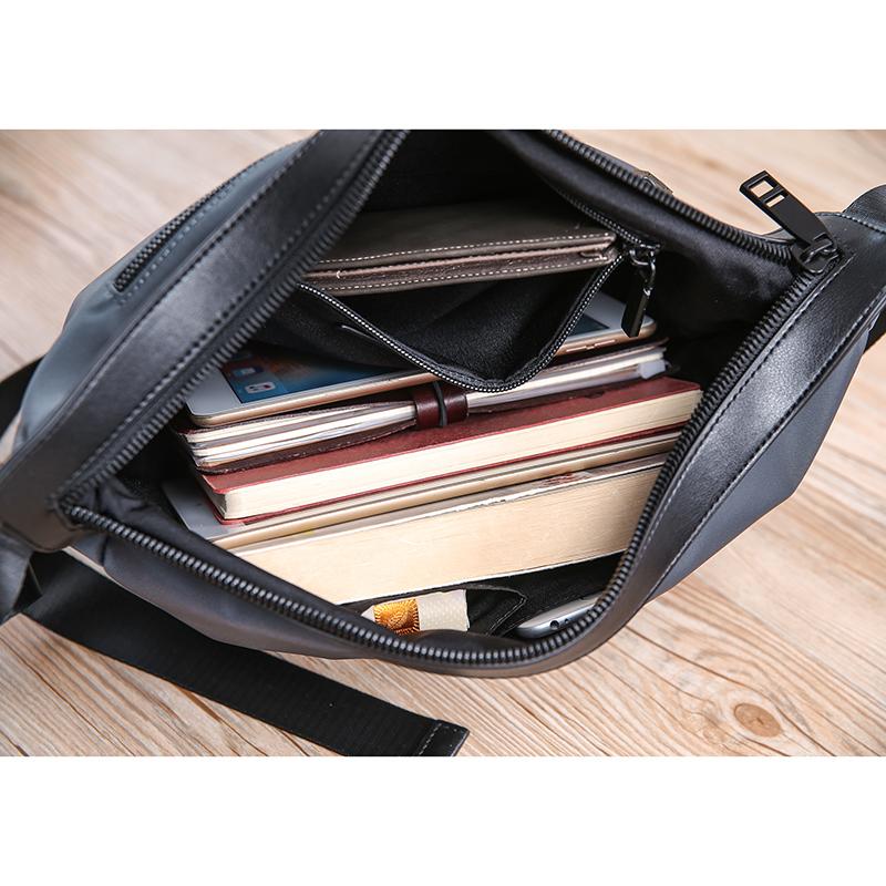 Style: Cool Black LEATHER MENS Waterproof Side Bag Black Messenger Bag Courier Bag For Men