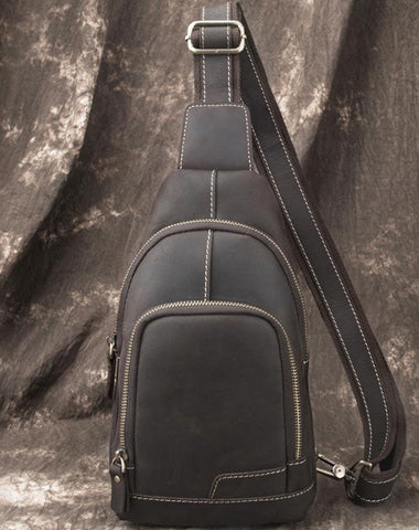 Design: Cool Black Leather Messenger Bag Men's Coffee Small Side Bag Sling Bag Courier Bag For MenOverview: