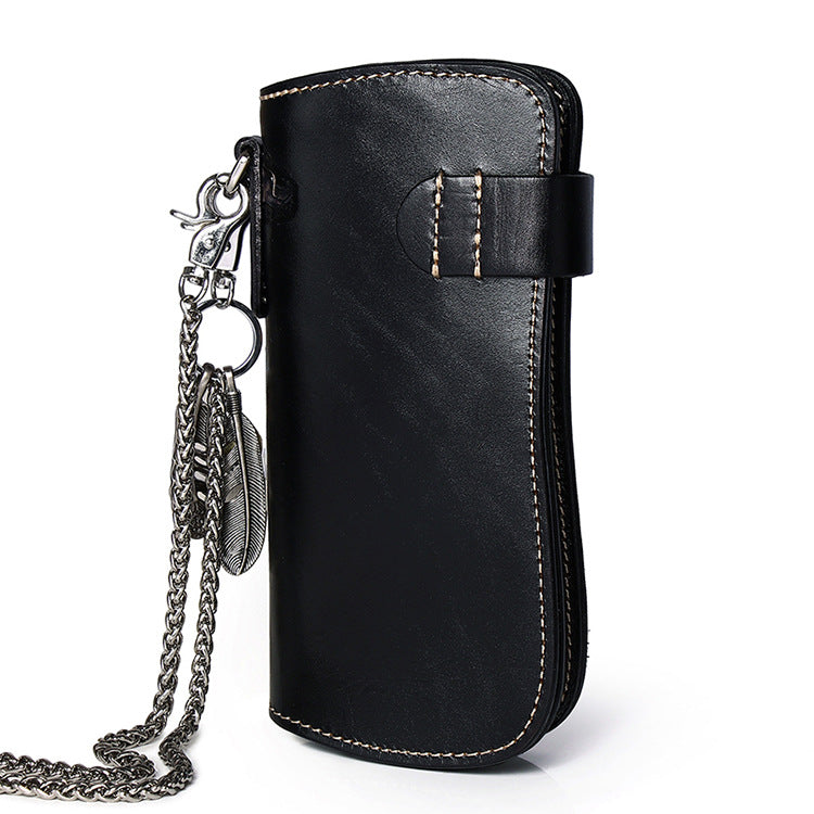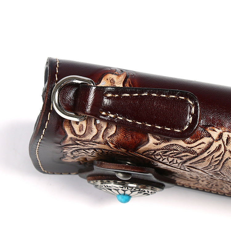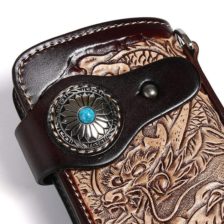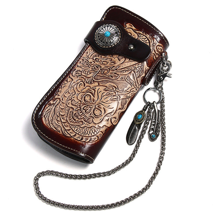 Style: Cool Leather Tooled Dragon&Skull Biker Wallet Handmade Biker Chain Wallet for Men