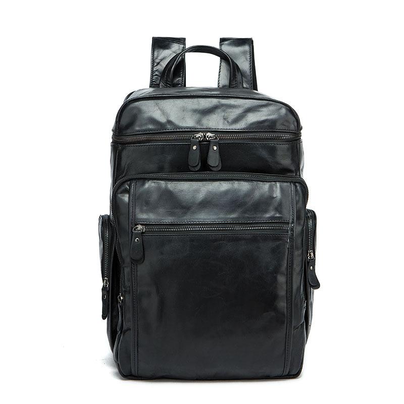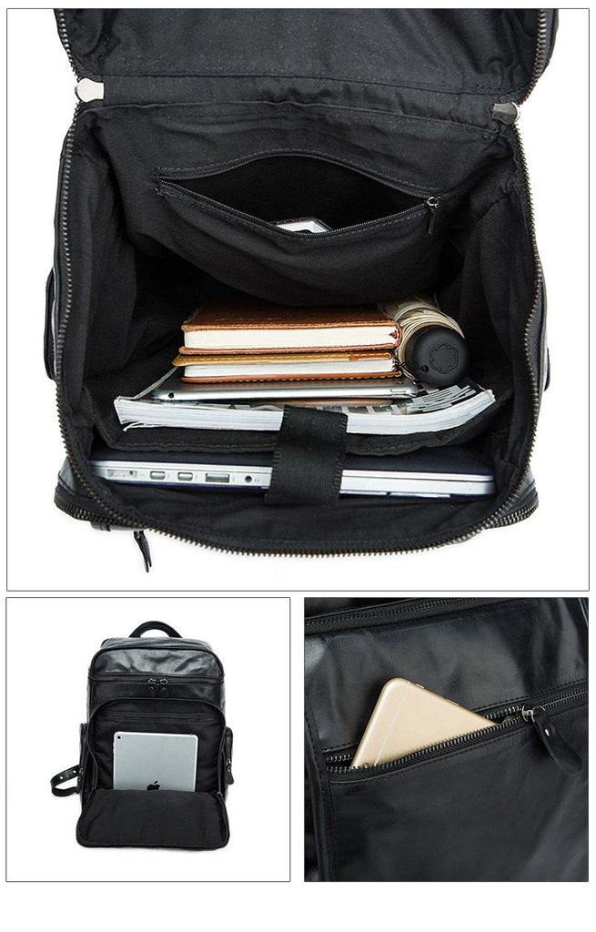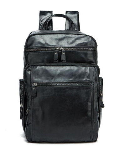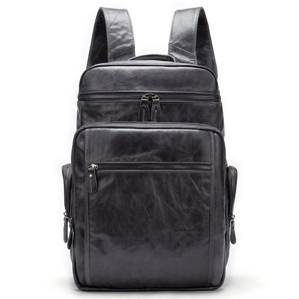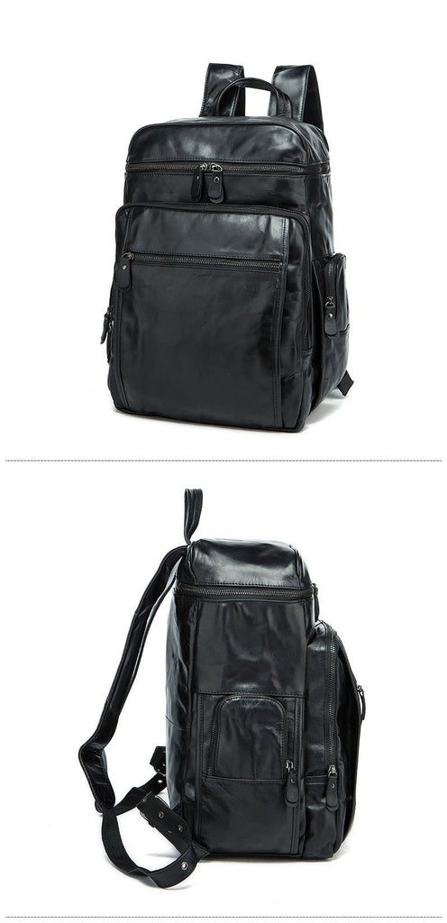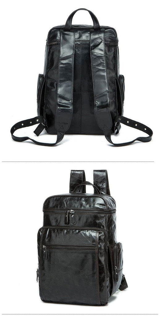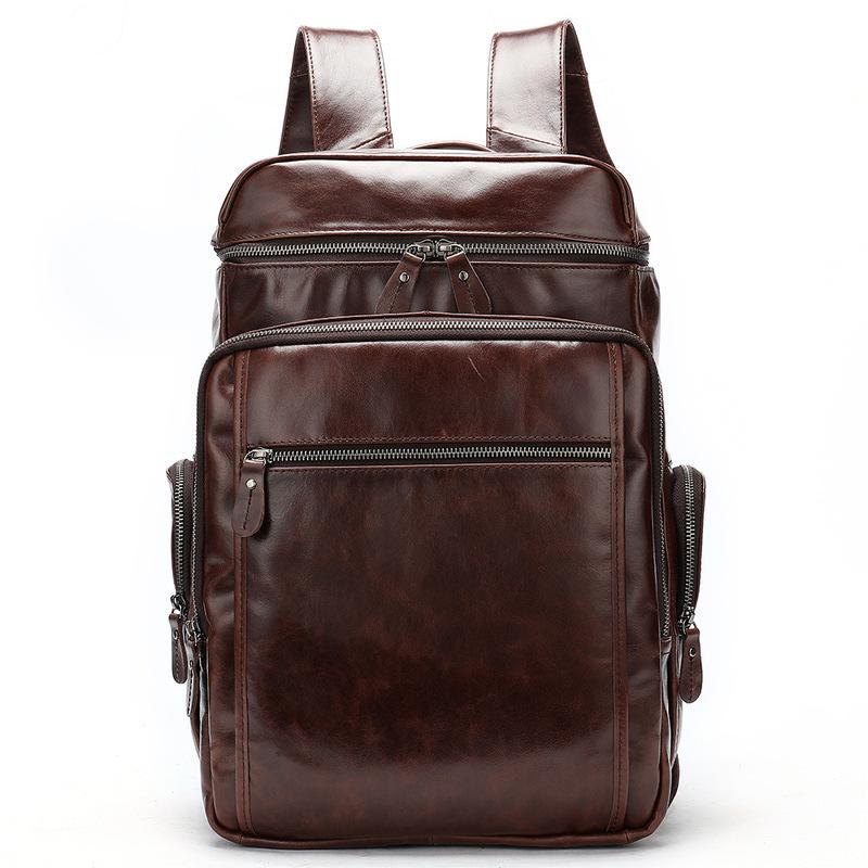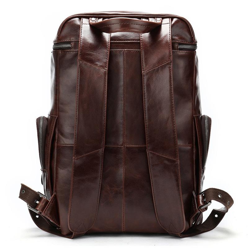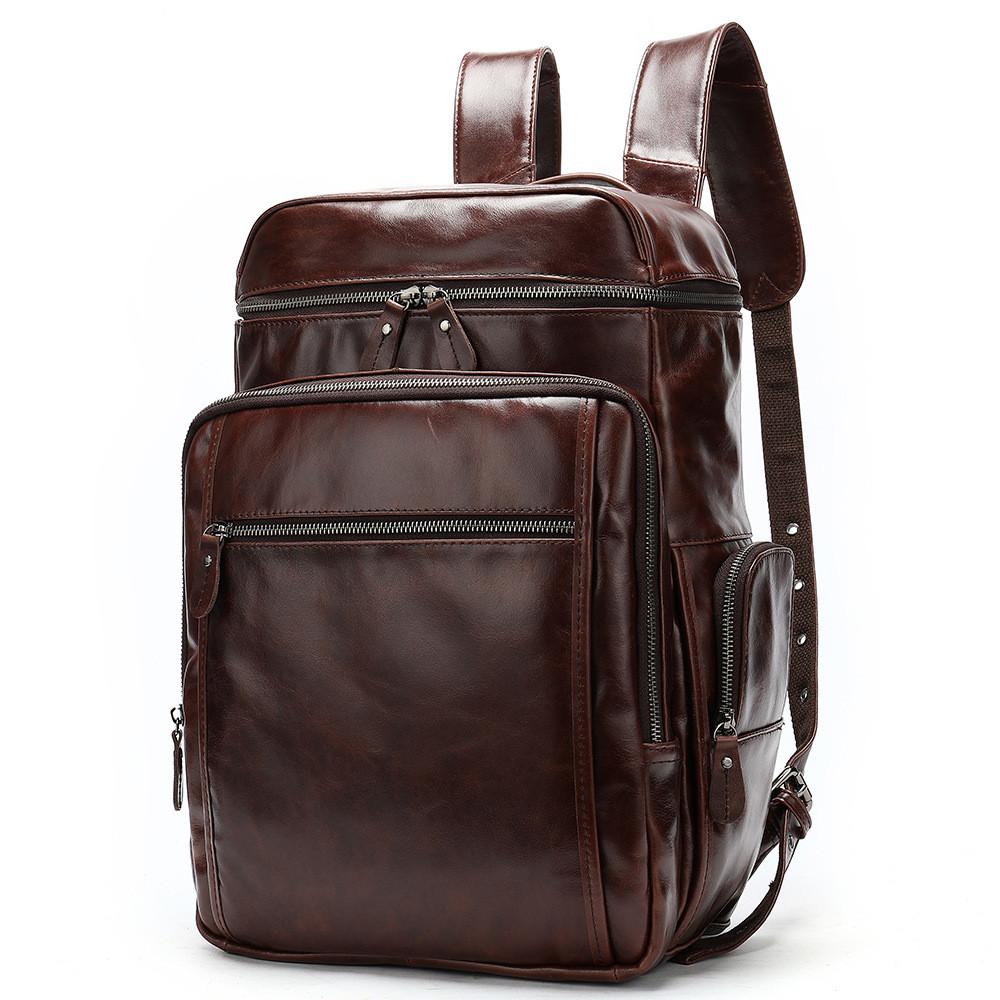 Design: Cool Brown Mens Leather 15 inches Large School Backpack Dark Brown Travel Backpack for MenOverview: