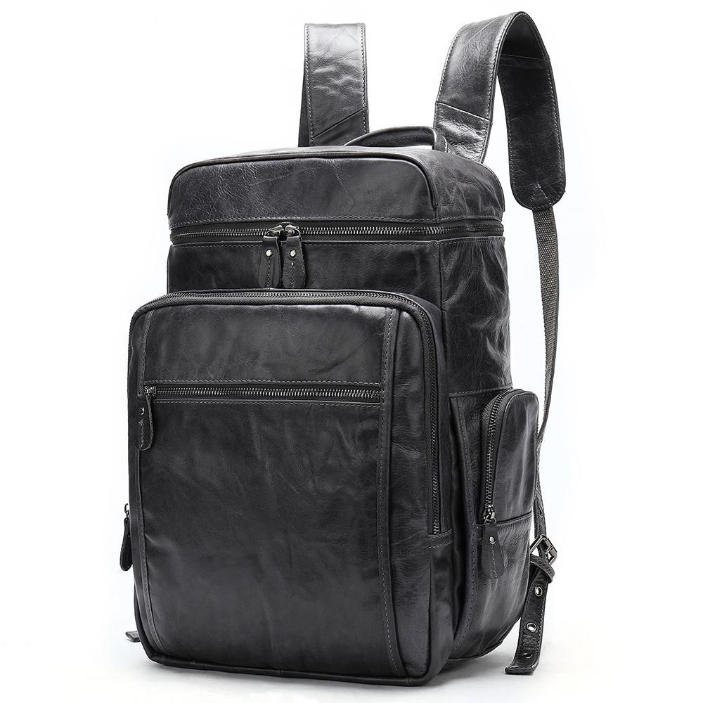 Design: Cool Brown Mens Leather 15 inches Large School Backpack Dark Brown Travel Backpack for Men