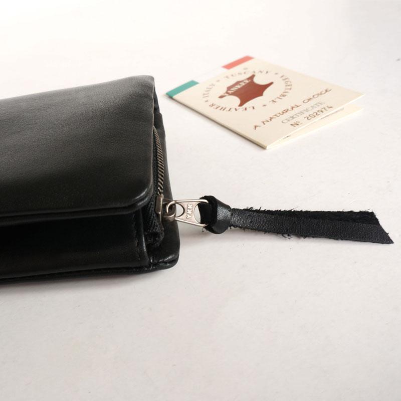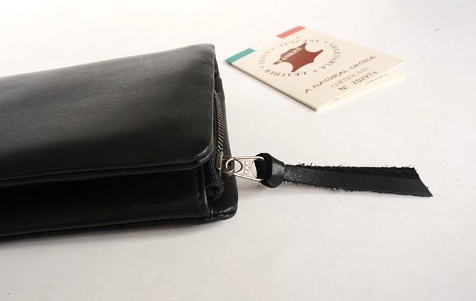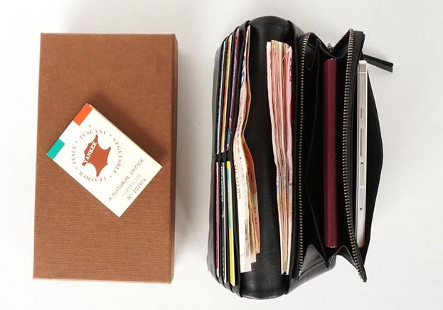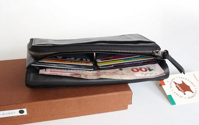 Slots: 3 full size bill slots, 12 card holders, 1 zipper slot