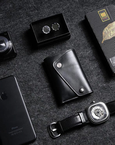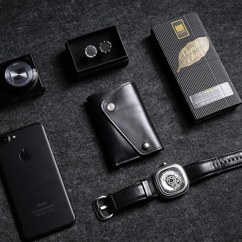 Style: Cool Black Gray Leather Men's Key Holders Key Wallet For Men