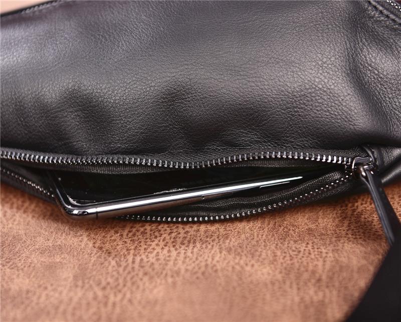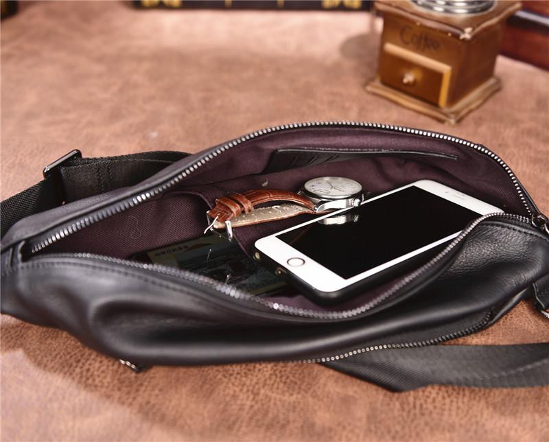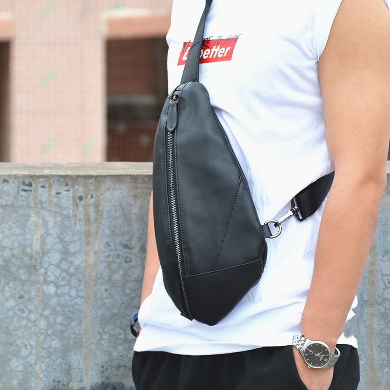 Design: Cool Black Mens Leather One Shoulder Backpack Chest Bag Sling Bag Sling Crossbody Bag For Men