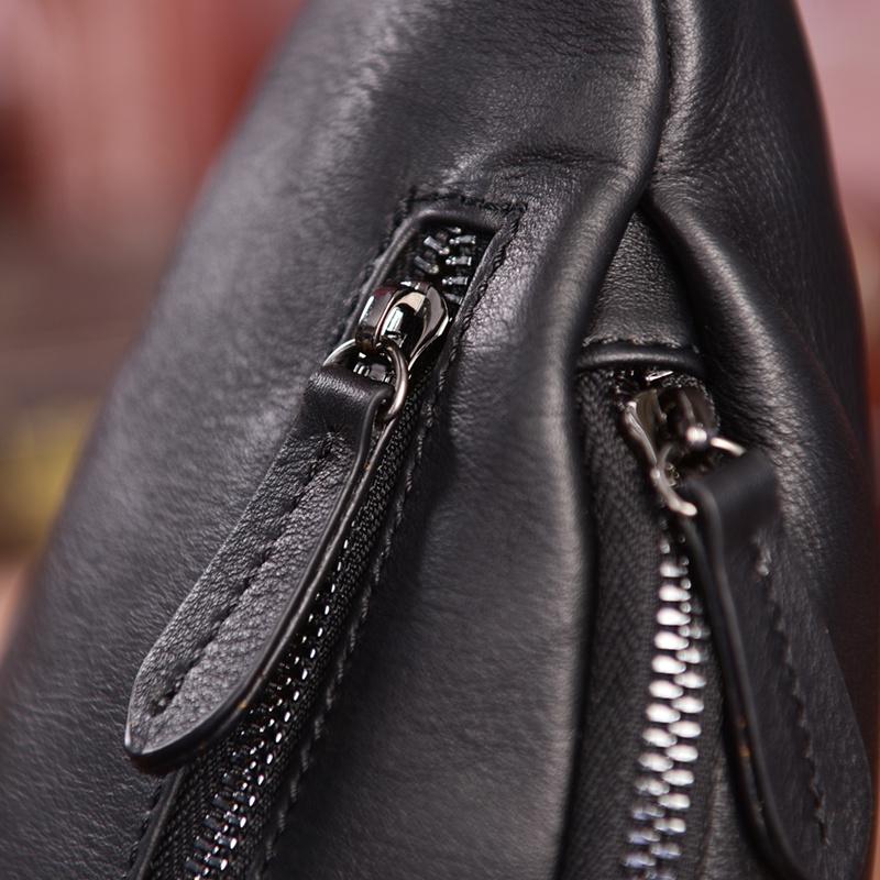 Style: Cool Black Mens Leather One Shoulder Backpack Chest Bag Sling Bag Sling Crossbody Bag For Men