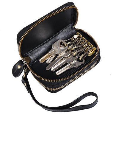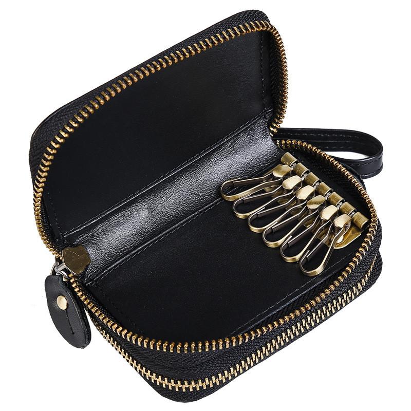 Design: Cool Black Mens Womens Zipper Leather Car Key Wallet Key Holder Change Holder For Men