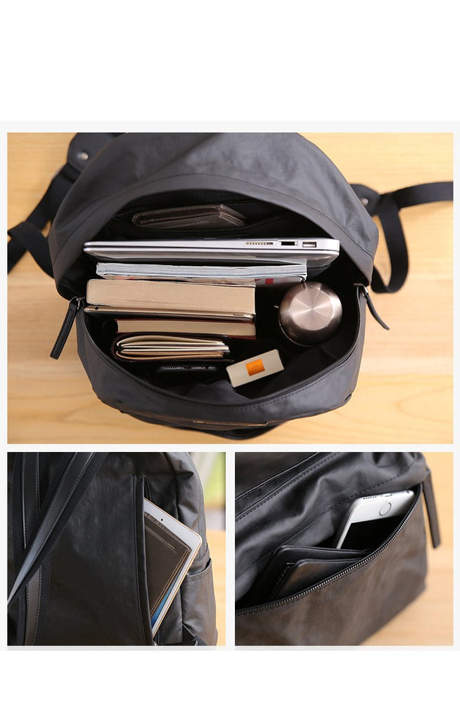 Design: Cool Black Nylon Backpack Men's 14 inches Waterproof Backpack School Bag For Men