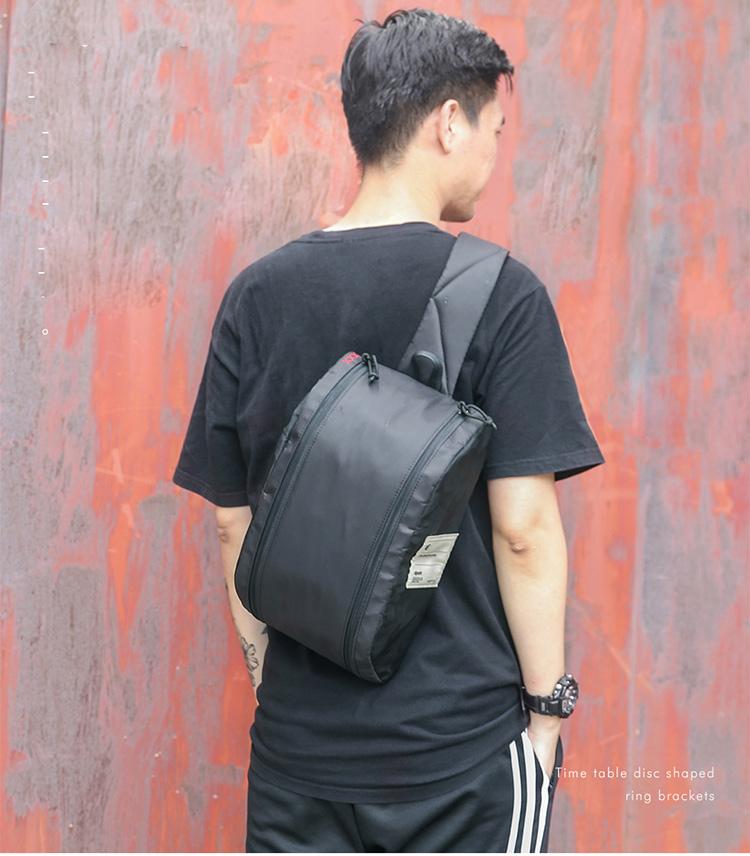 Design: Cool Black Oxford Cloth PVC Men's Sling Bag Chest Bag One Shoulder Backpack For Men
