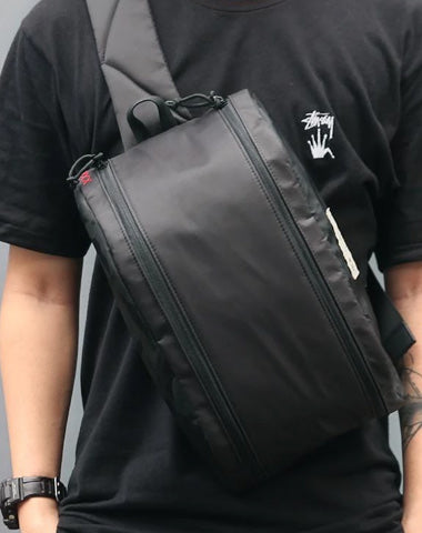 Style: Cool Black Oxford Cloth PVC Men's Sling Bag Chest Bag One Shoulder Backpack For Men