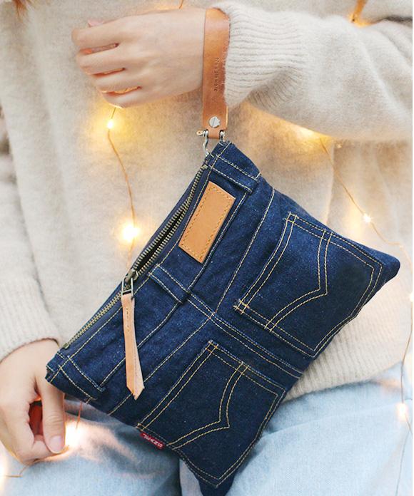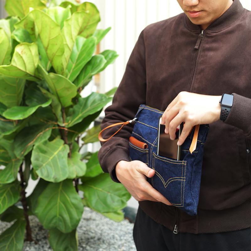 Design: Cool Blue Jean Mens Clutch Bag Wristlet Wallet Zipper Clutch Wallet For Men