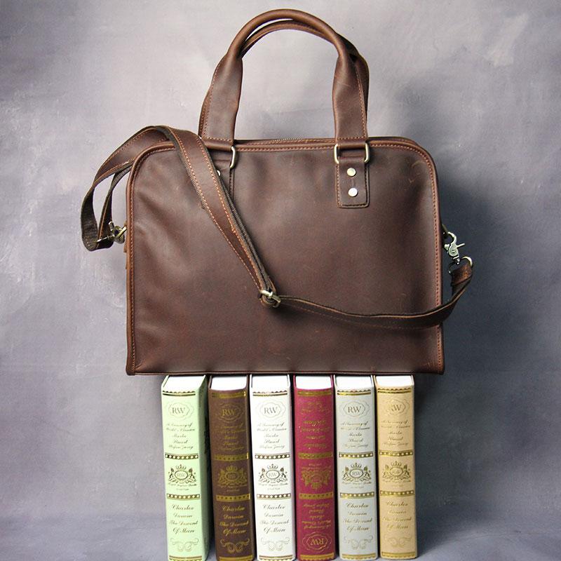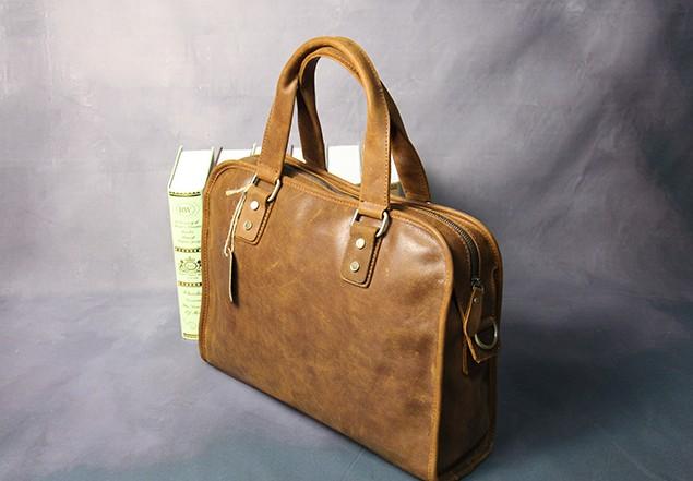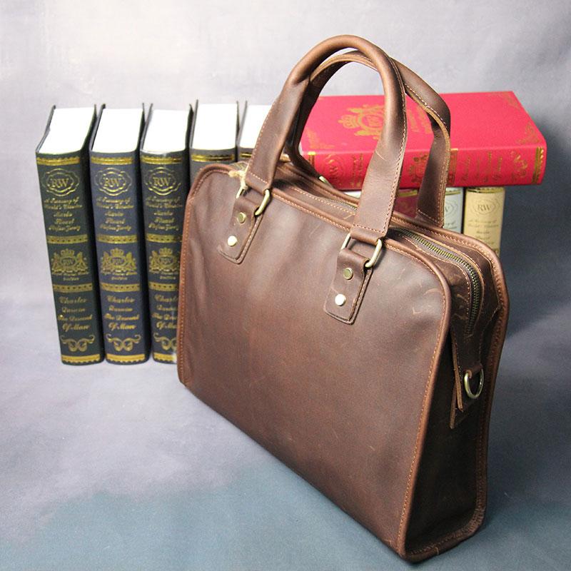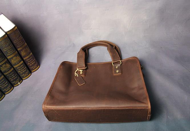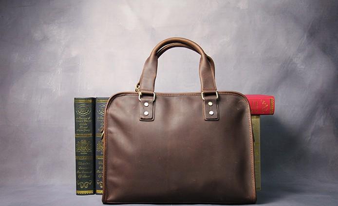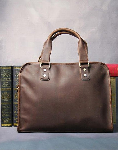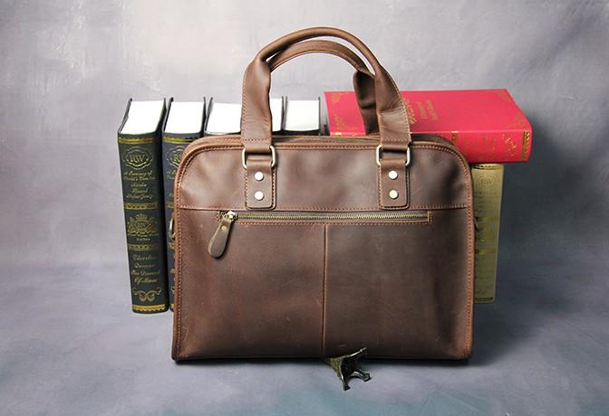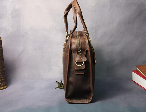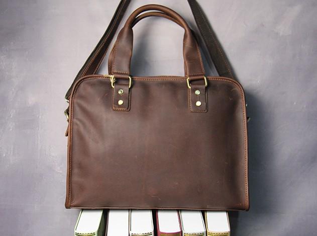 Design: Cool Brown Coffee Leather Mens Briefcase 12inch Work Handbag Business Bag for Men