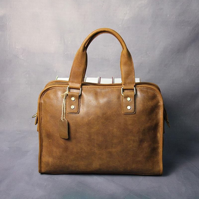 Style: Cool Brown Coffee Leather Mens Briefcase 12inch Work Handbag Business Bag for Men