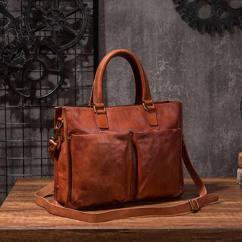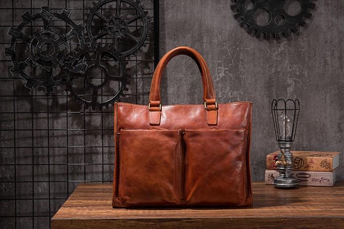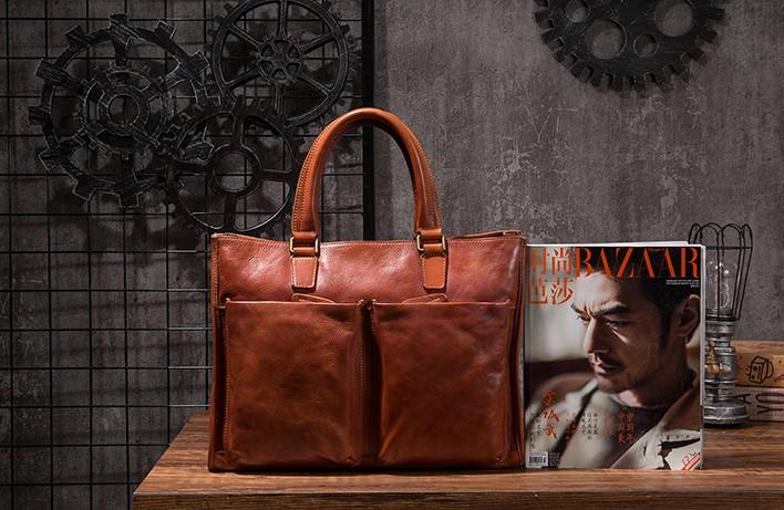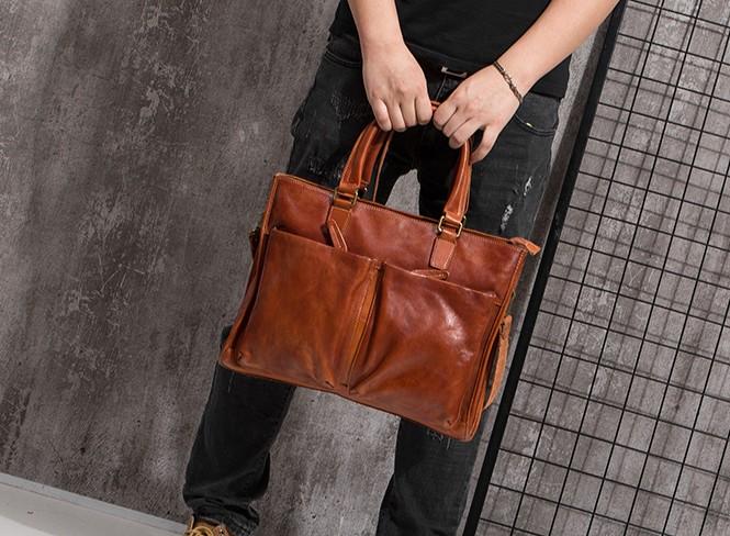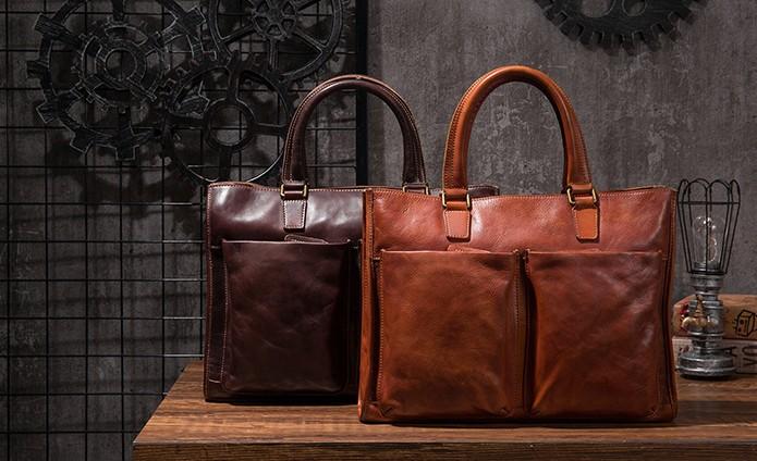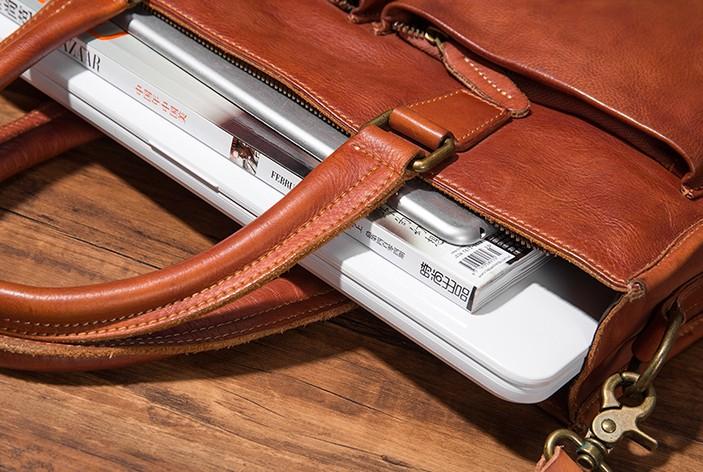 Design: Cool Coffee Leather Mens Briefcase Work Handbag Laptop Bag Business Bag for Men