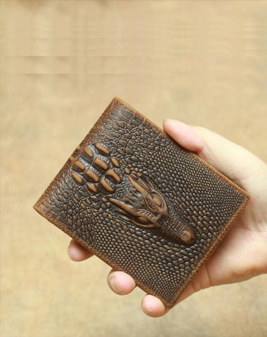 Design: Cool Brown Crocodile Skin Bifold Small Wallet Leather Mens Yellow Brown billfold Small Wallet Card Wallet Coin Purse For Men