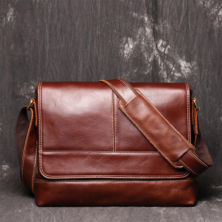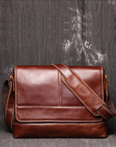 Design: Cool Brown Leather Men's 12 inches Horizontal Side Bag Red Brown Messenger Bag Shoulder Bag For MenOverview: