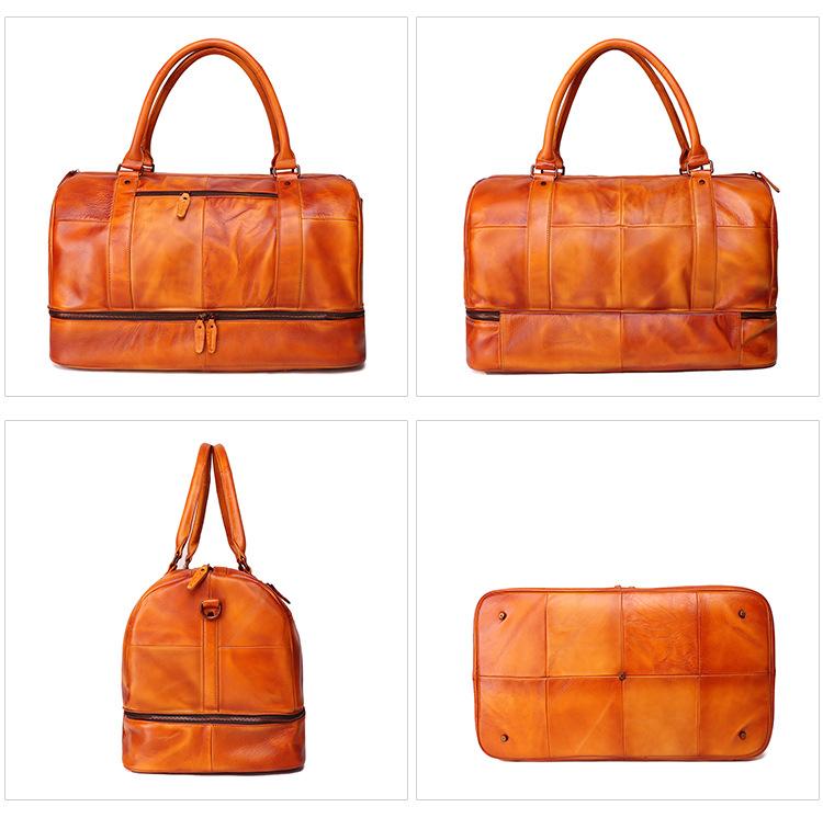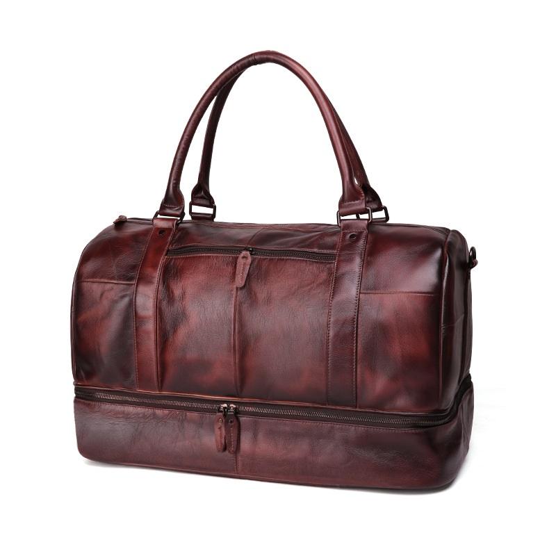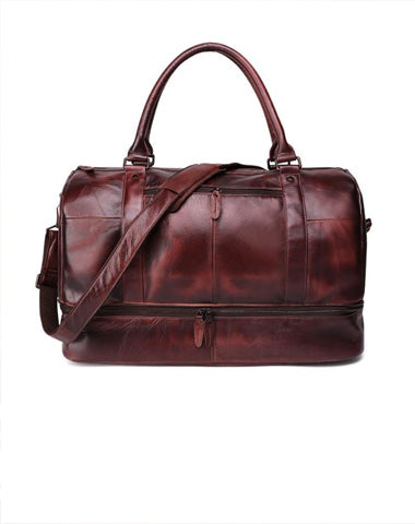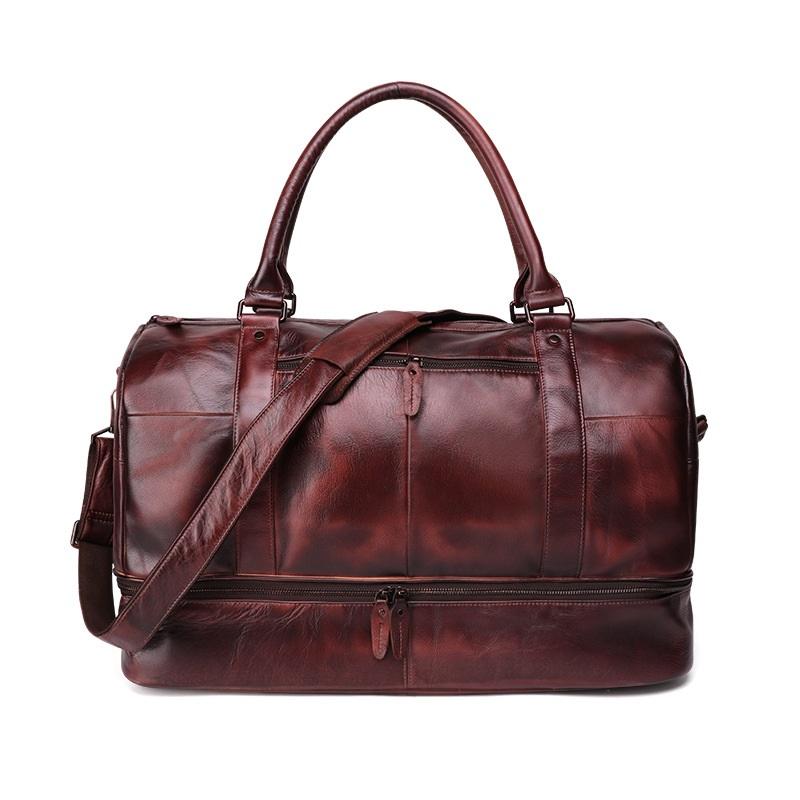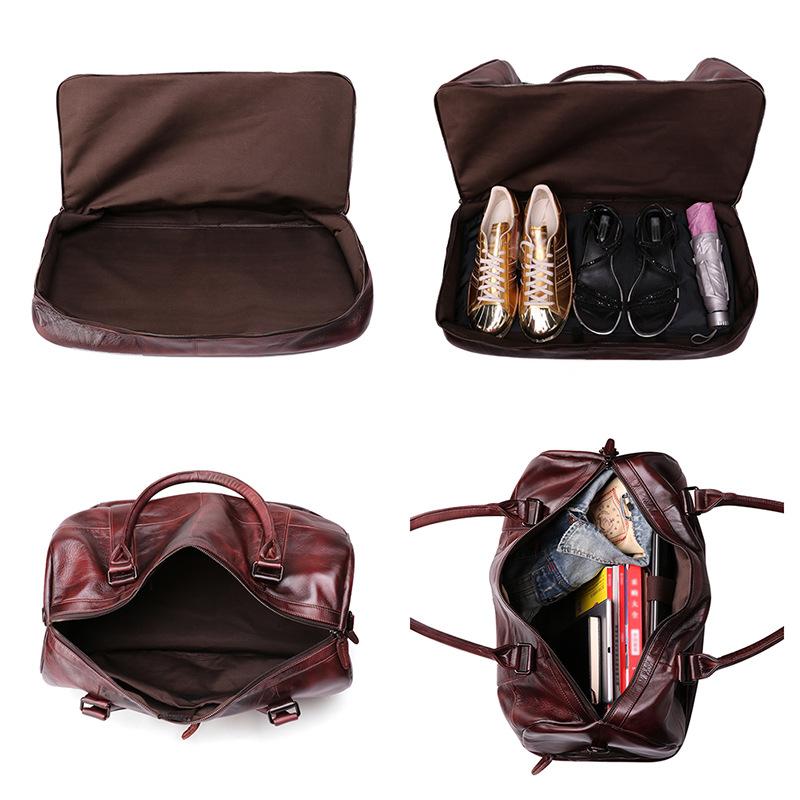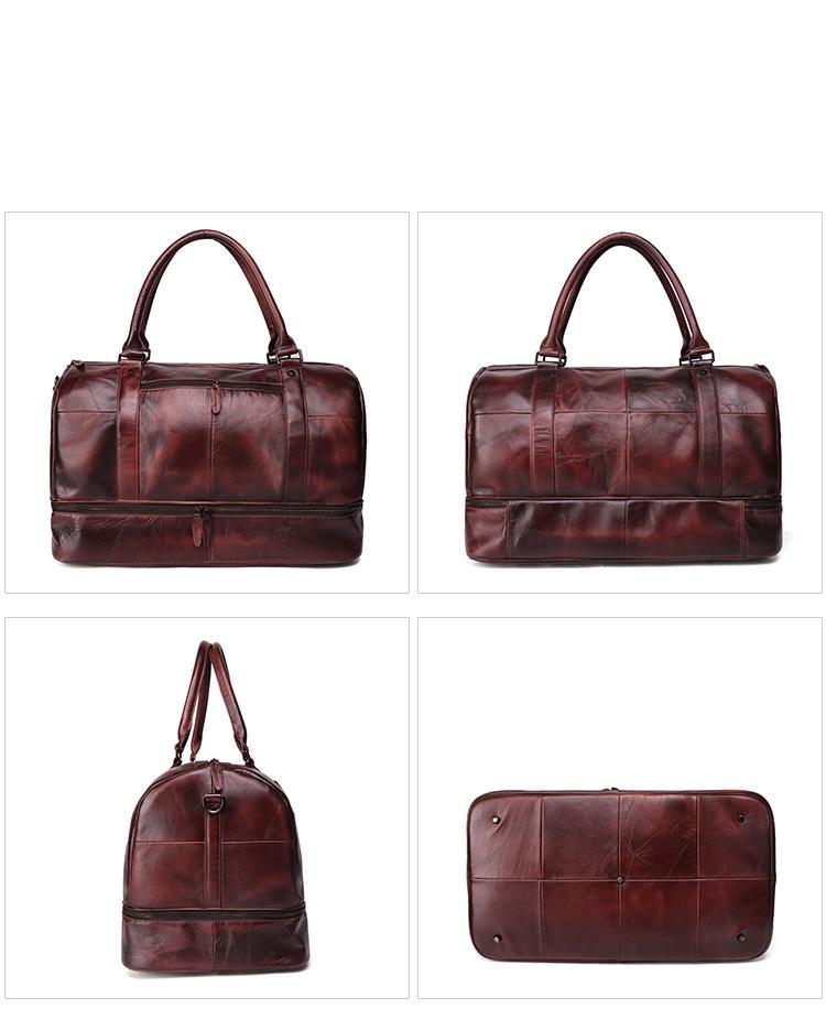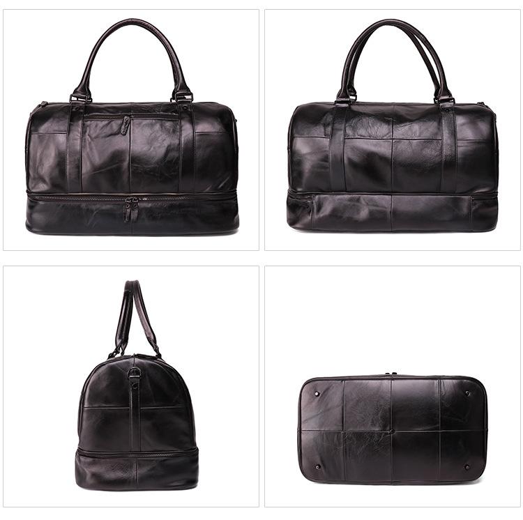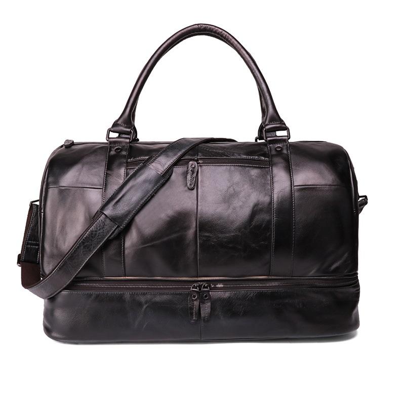 Design: Cool Brown Leather Mens 15" Large Weekender Bag Black Business Travel Bag Duffle Bag for Men
