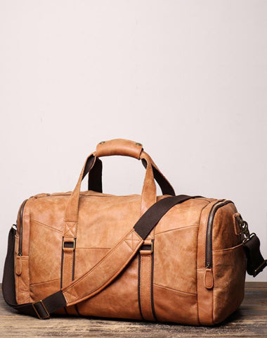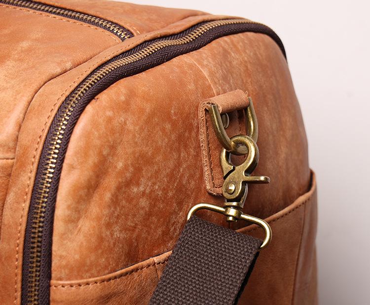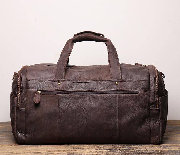 Design: Cool Brown Leather Mens 16" Large Weekender Bag Dark Brown Business Travel Bag Duffle Bag for Men