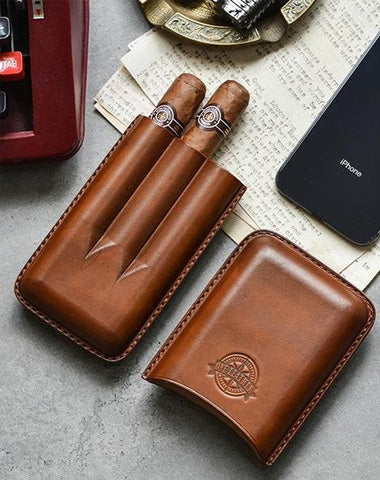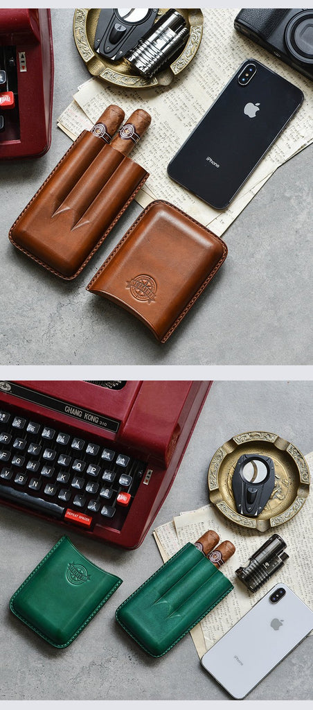 Cool Brown Leather Mens 3pcs Cigar Case Cool Custom Leather Cigar Case for Men