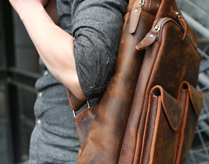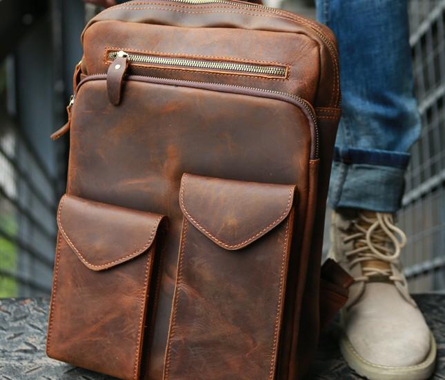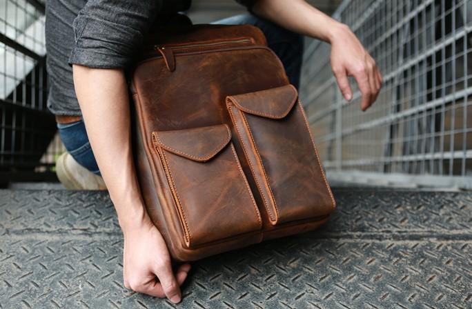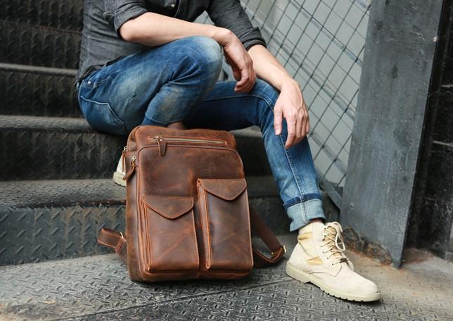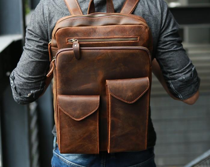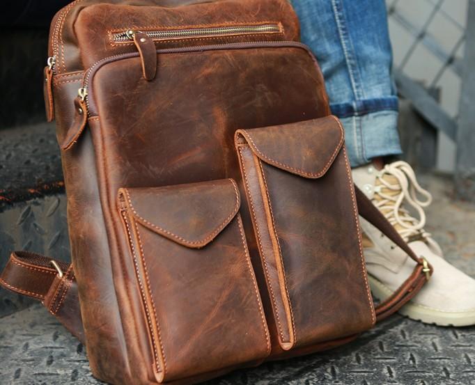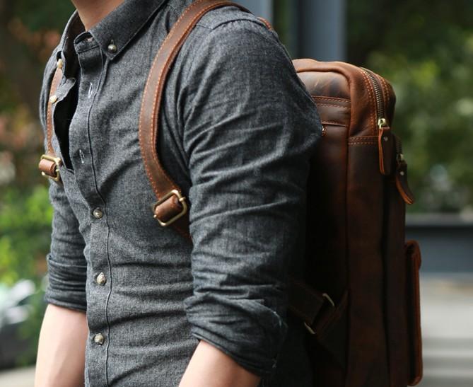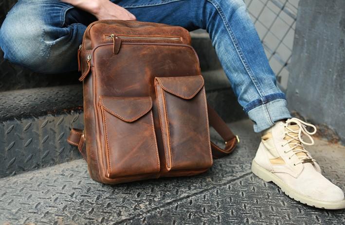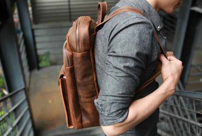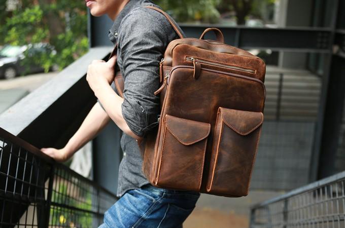 Style: Cool Brown Leather Mens Backpack Travel Backpacks Laptop Backpack for men