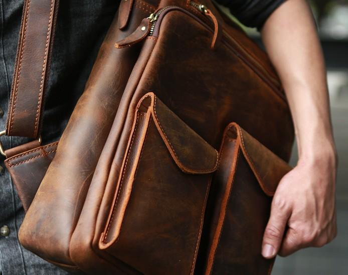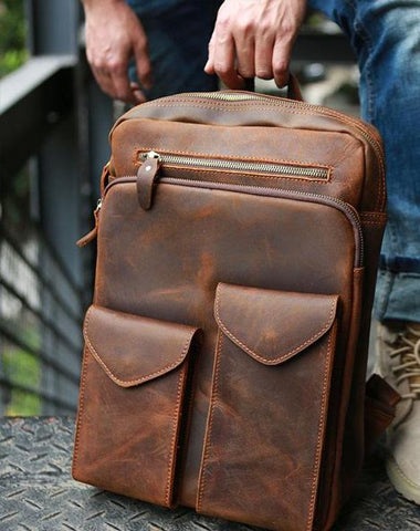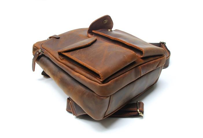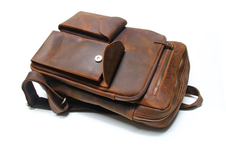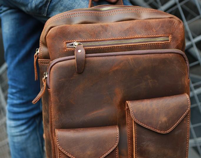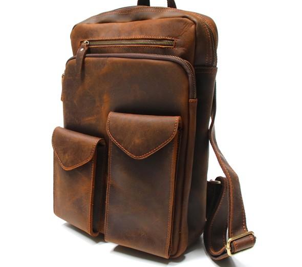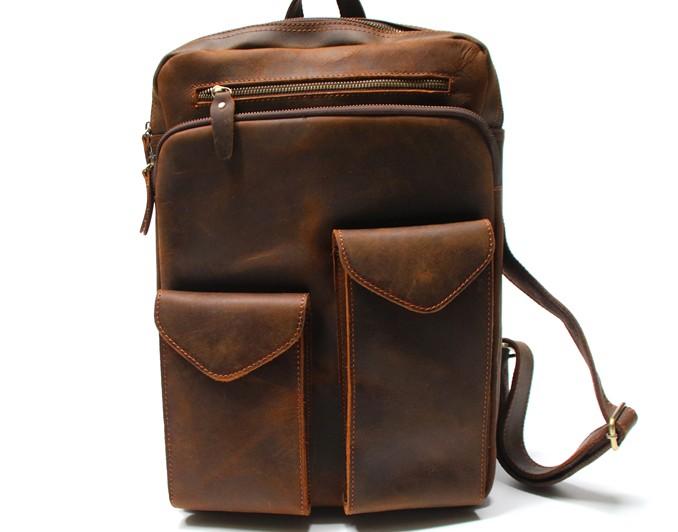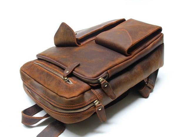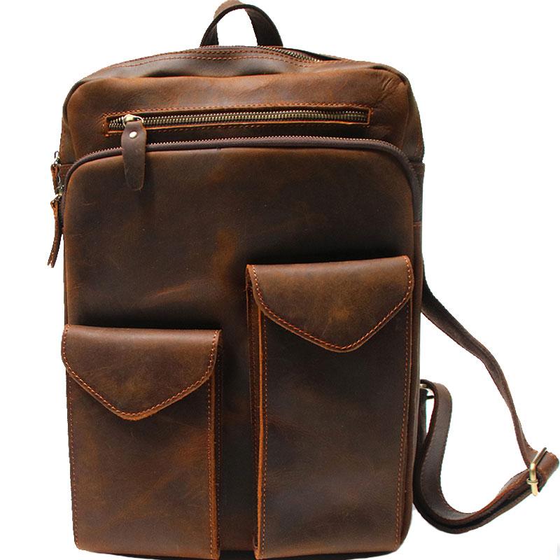Design: Cool Brown Leather Mens Backpack Travel Backpacks Laptop Backpack for men