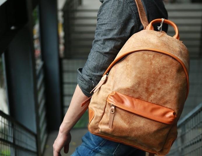 Style: Cool Brown Leather Mens Backpacks Travel Backpacks Laptop Backpack for men