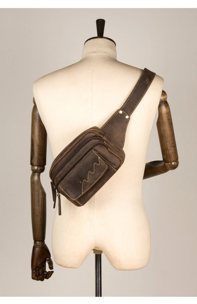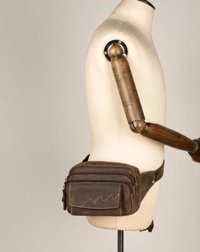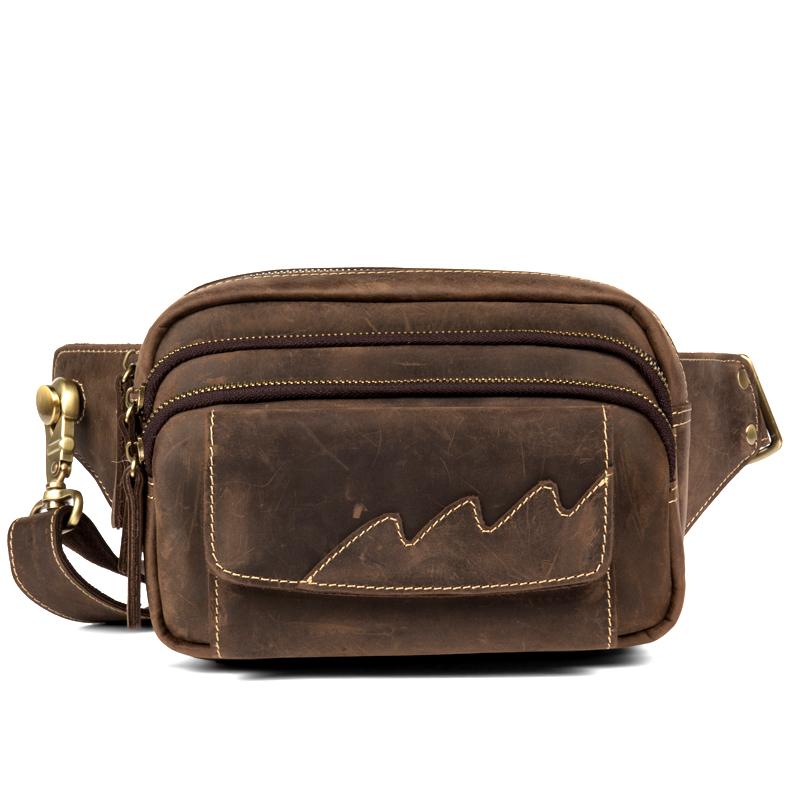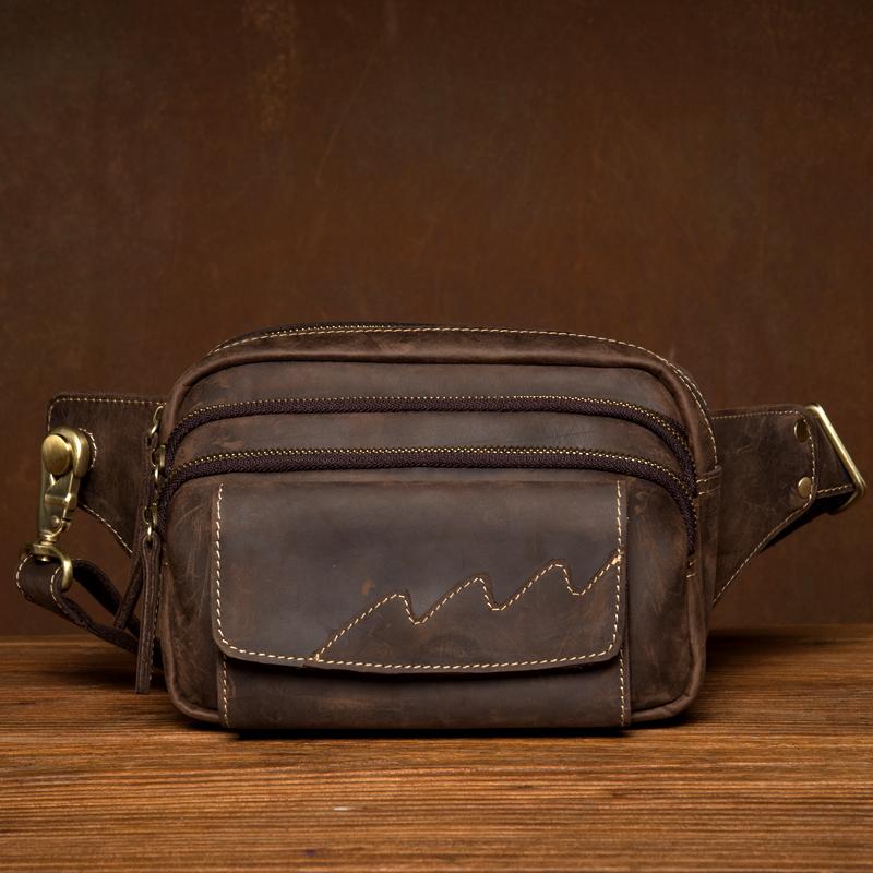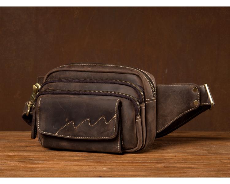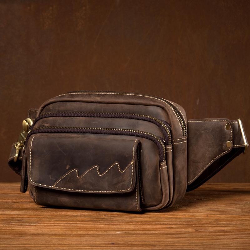 Design: Cool Brown Leather Mens Bumbag Fanny Pack Brown Waist Bag Hip Pack Belt Bag for Men