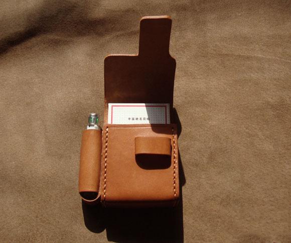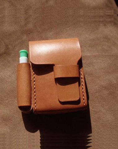 Style: Cool Handmade Brown Leather Mens Cigarette Case with Lighter Holder Belt Loop for Men